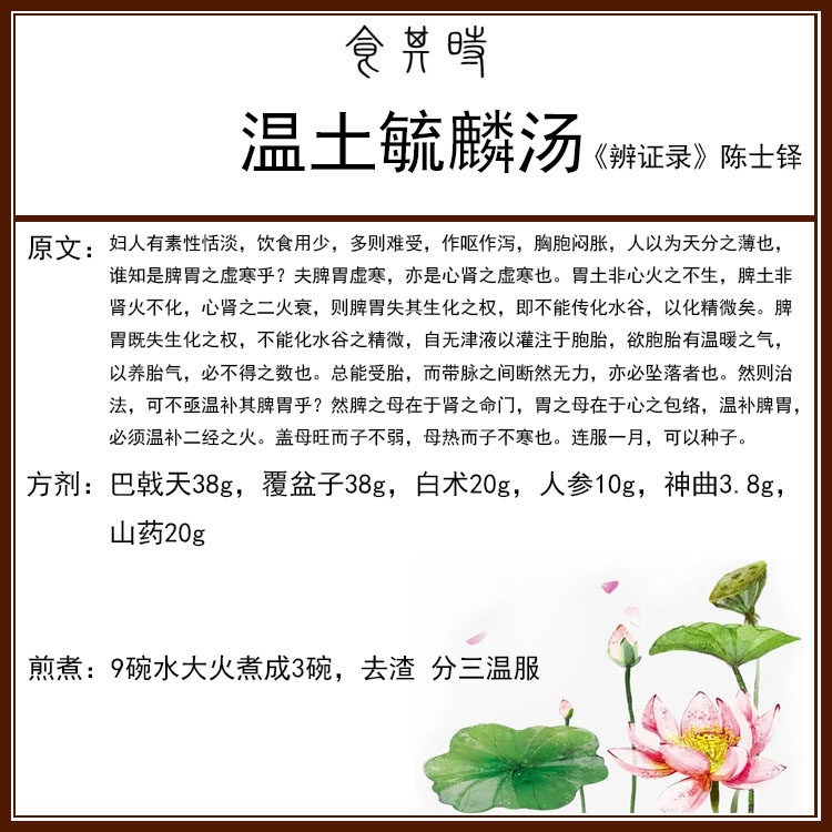 📚 食其时 倪海厦陈士铎 温土毓麟汤 食少 多食作呕泻 巴戟天 3剂