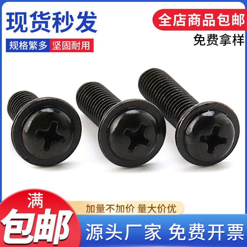 📚 PWM发黑带垫机丝螺丝 黑色圆头带介电子电器机牙介子头螺丝