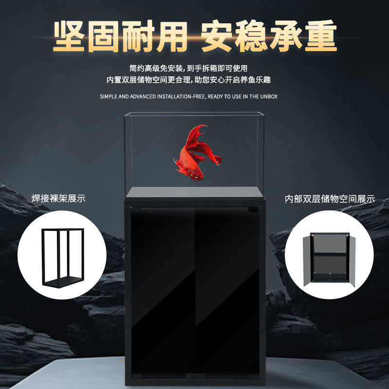 📚 热销长【60宽30高35cm】超白玻璃鱼缸带柜子一整套中小型客厅家用