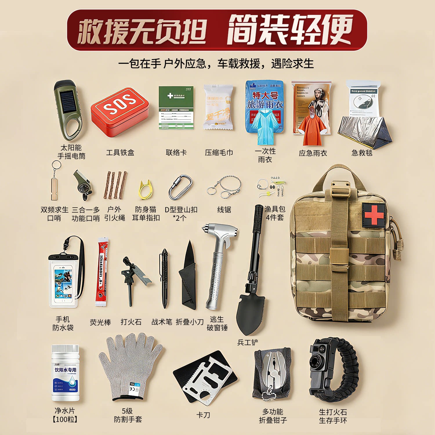 📚 家庭应急包全套物资应急救援包灾难地震人防战备末日生存装备
