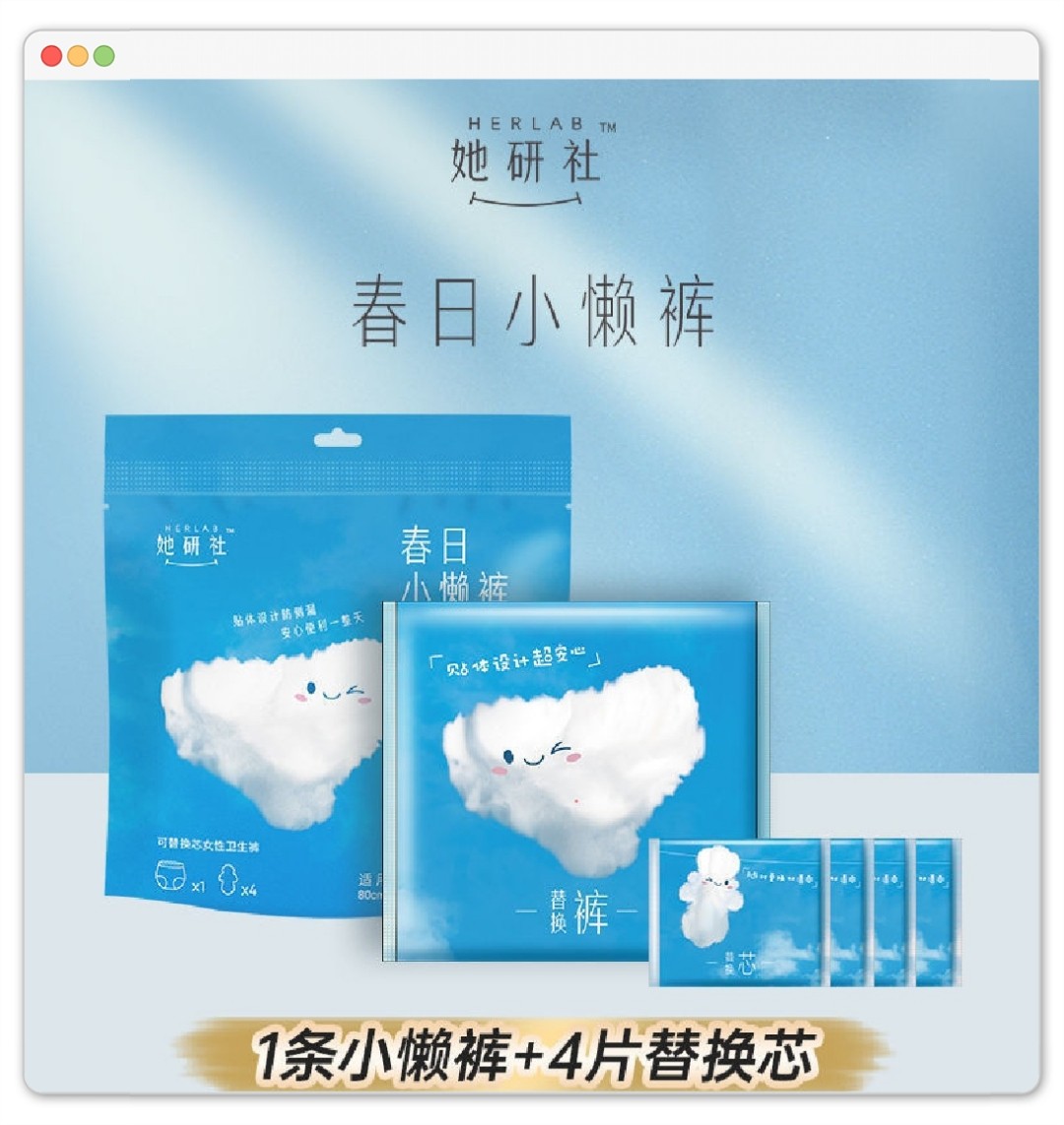 📚 她妍社安睡裤型卫生巾安心裤经期用防漏裤女睡安日用小懒裤替换芯