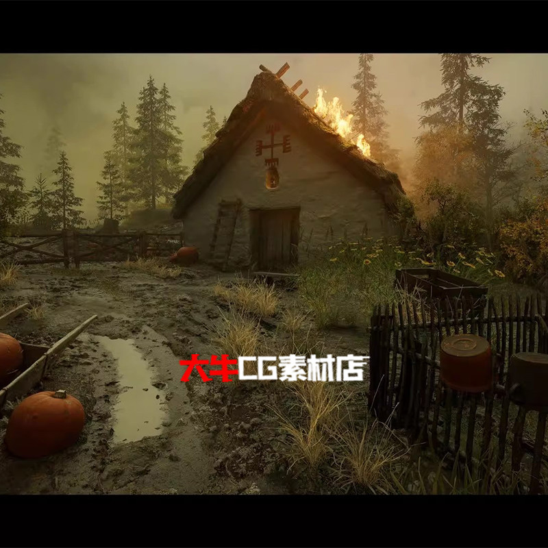 #UE5虚幻写实 #秋季丛林 #乡村茅草房 #室内建筑场景 #券后价2.8元