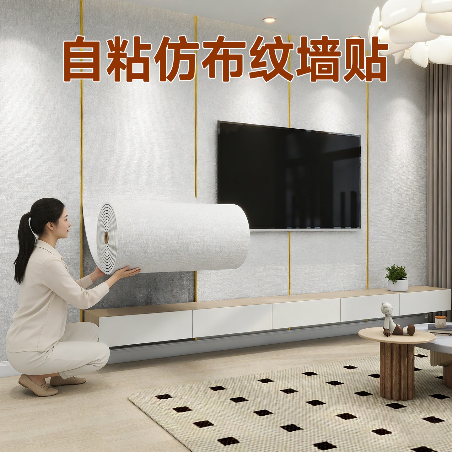 📚 自粘无缝墙布高级感2026新款布纹墙纸电视背景墙壁纸墙贴装饰遮丑