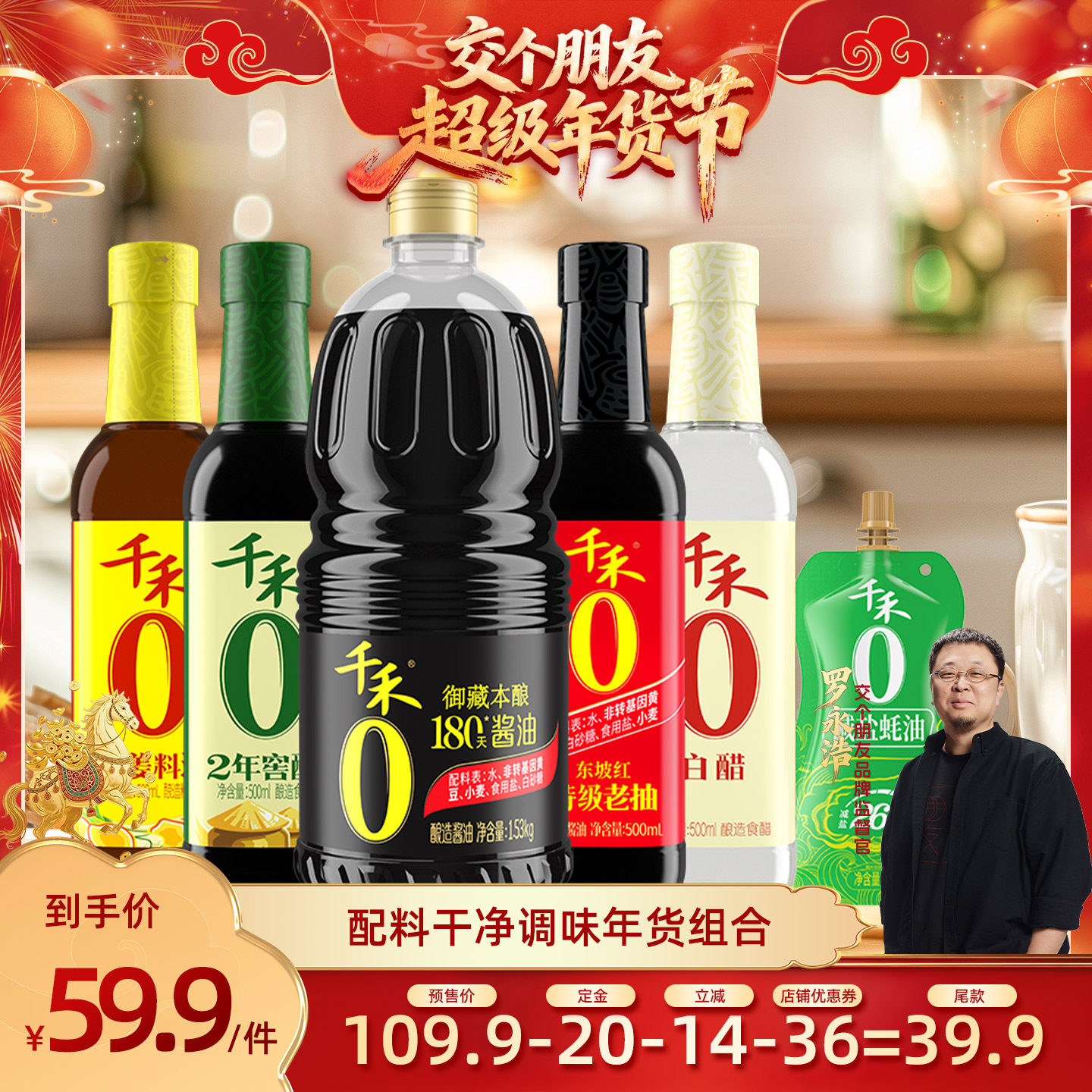 💥🍲种草新发现!【交个朋友付定金,26日0点付尾款】千禾酱油醋料酒蚝油调味6件装,券后价直降73.9💰
