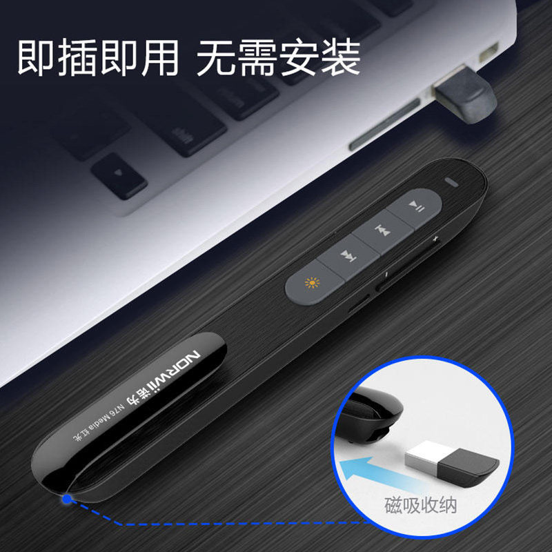 📚 诺为N76M司仪宝婚庆音控笔音量调节主持切歌无线遥控笔播放暂停充电手机音乐视频操控器