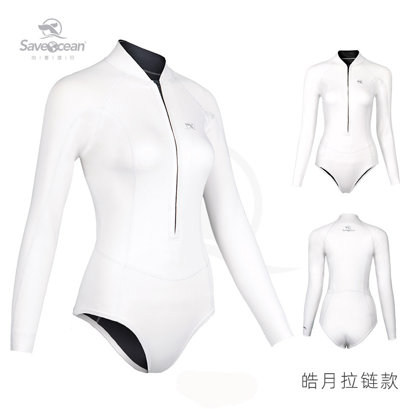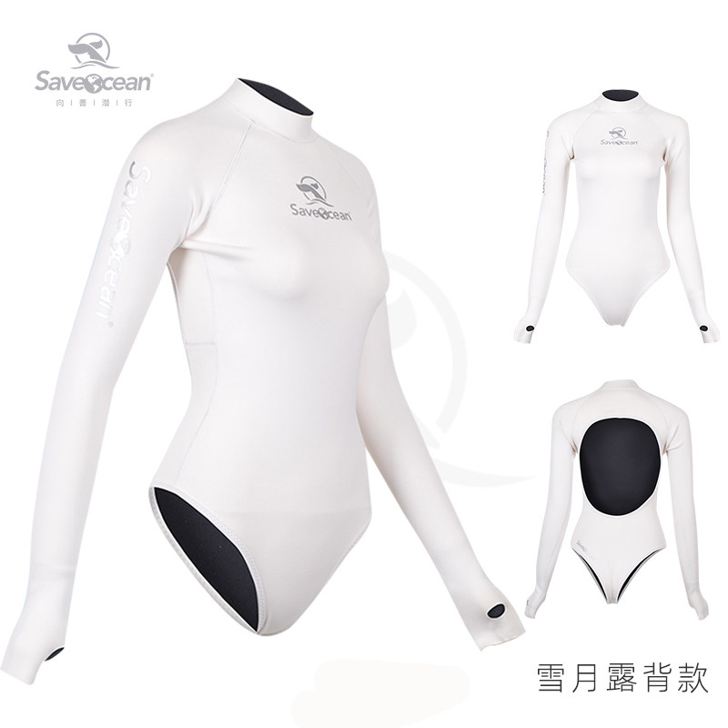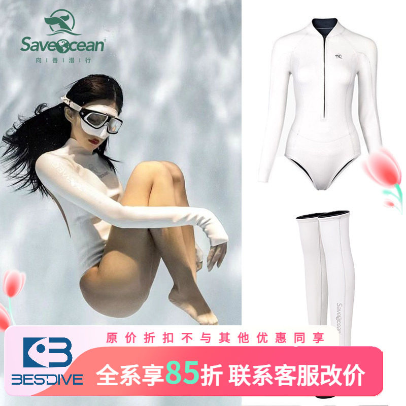 📚 现货BestDive SaveOcean自由潜水服湿衣女2MM白色超弹露背比基尼