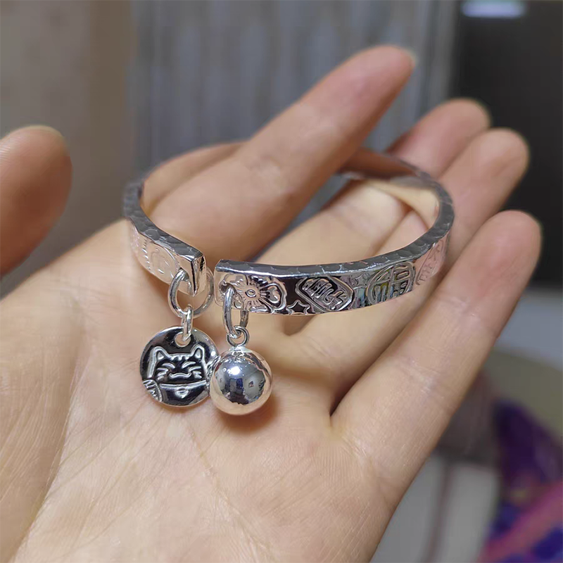 📚 纯银吊坠女招财猫富贵猪流苏纯银手镯搭配专用纯银铃铛银球吊坠