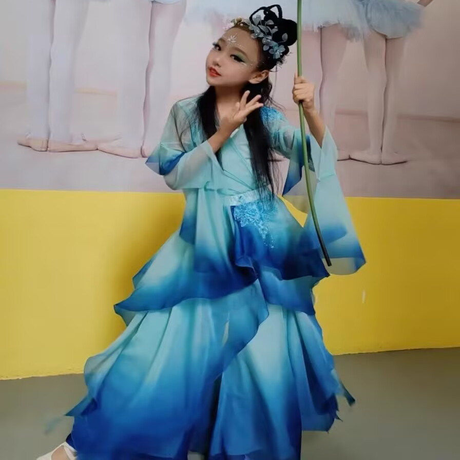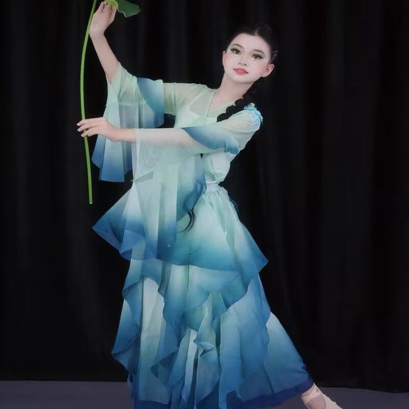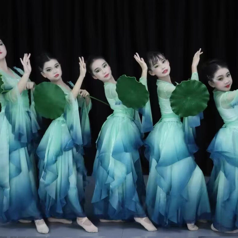 📚 儿童烟雨小镇采莲古典舞演出服九歌山鬼入画江南舞蹈服女飘逸绿色