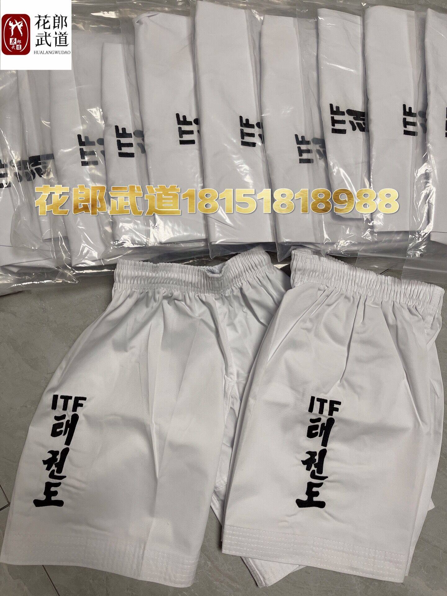 📚 花郎武道跆拳道全刺绣训练单裤休闲短裤ITF中裤1件包邮均码可定制
