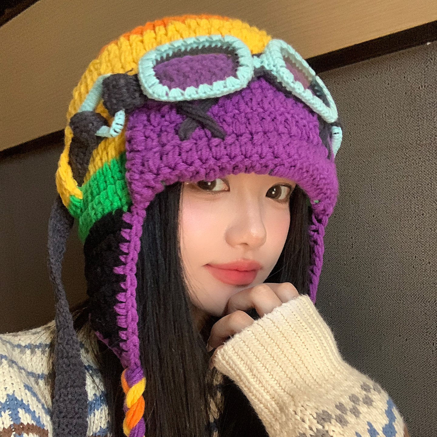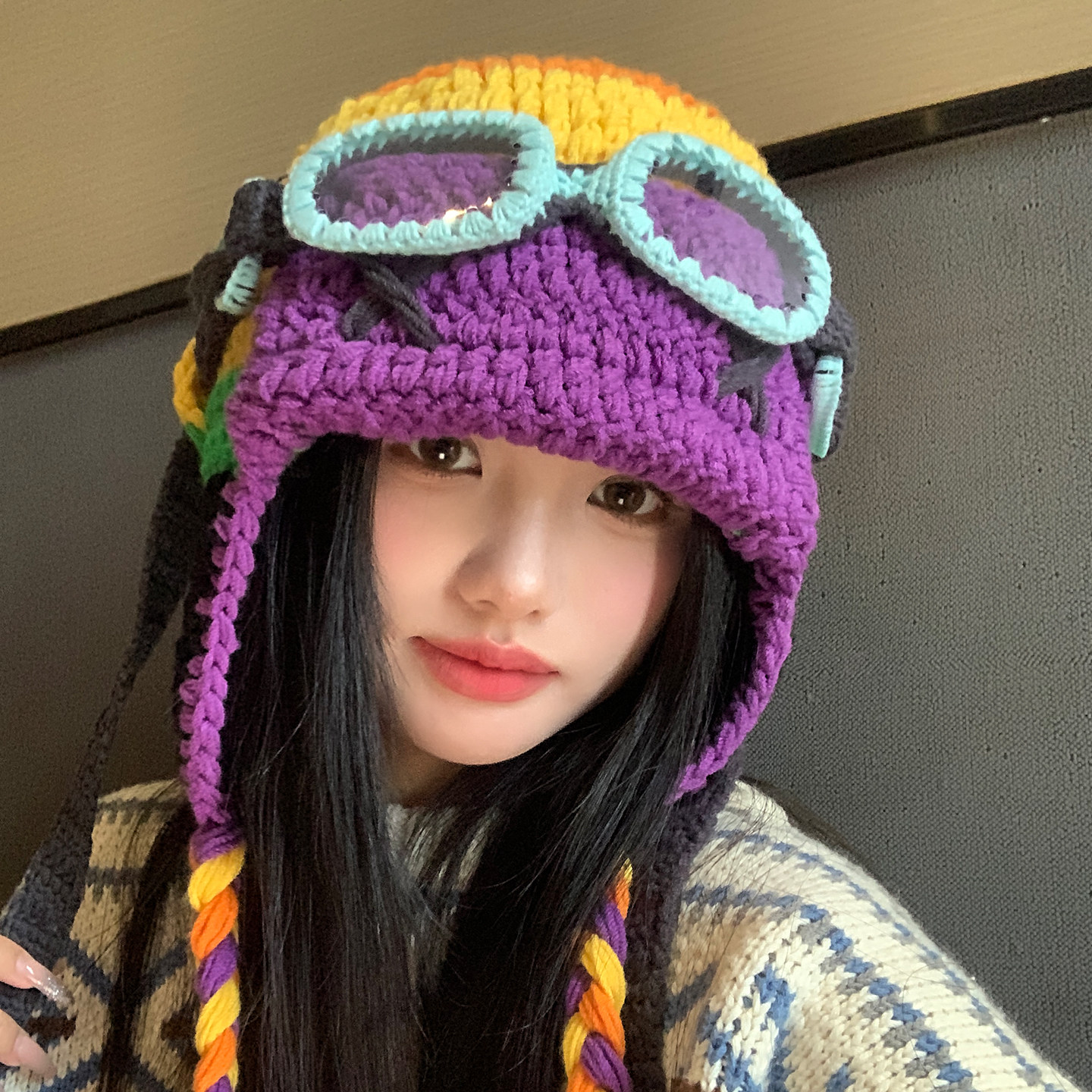 📚 檀健次同款可爱搞怪毛线帽女秋冬2025新款针织保暖飞行帽包头帽子