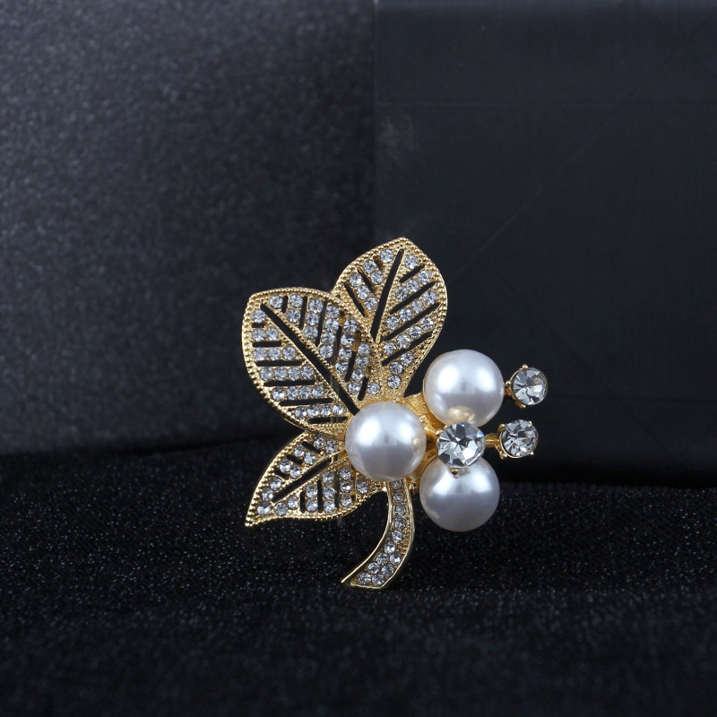 📚 金色生命树珍珠胸针女防走光扣西装固定胸花服装配饰简约水钻别针