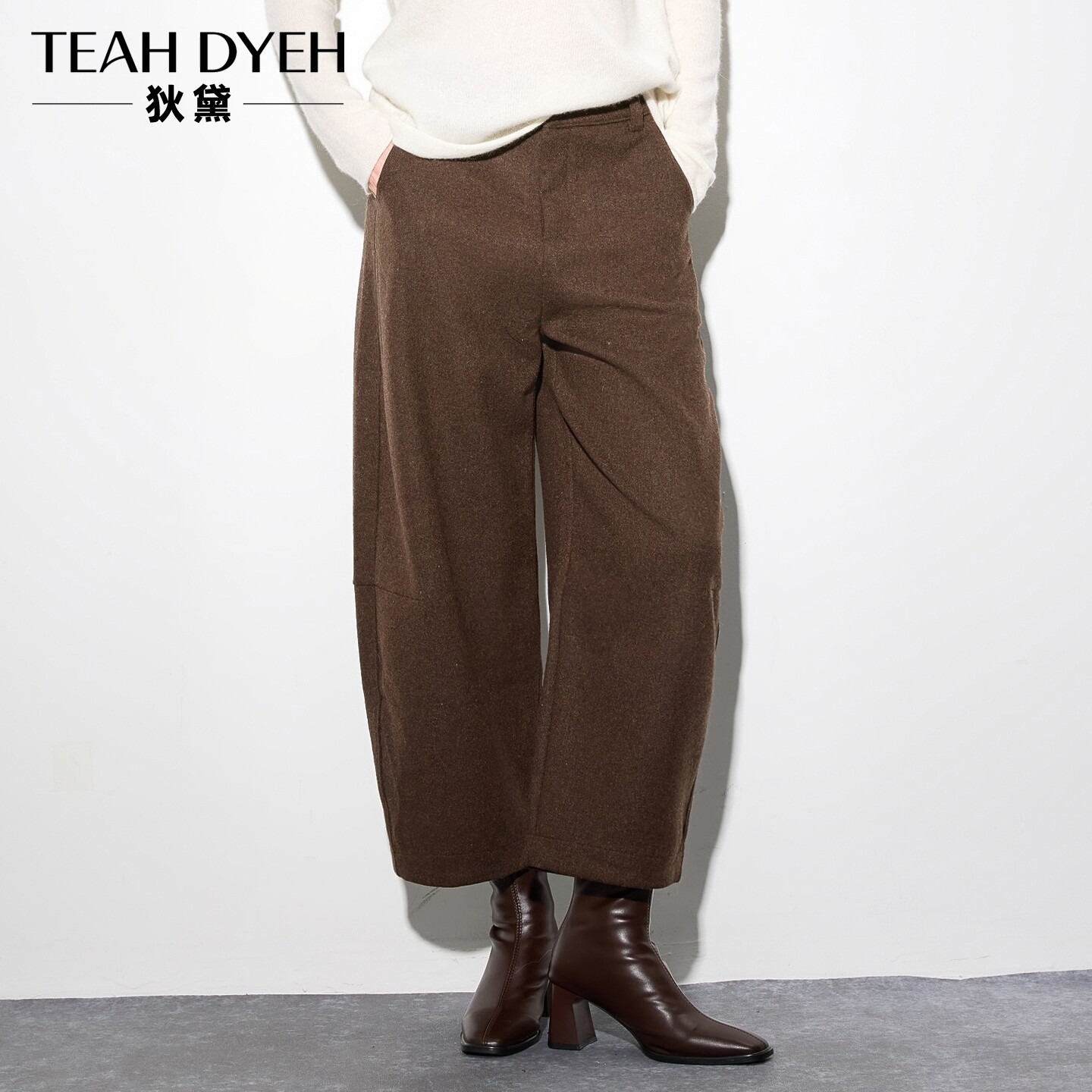 📚 梨形报恩神裤!高端羊毛呢 分割垂感8分香蕉镰刀驼色裤子女秋冬
