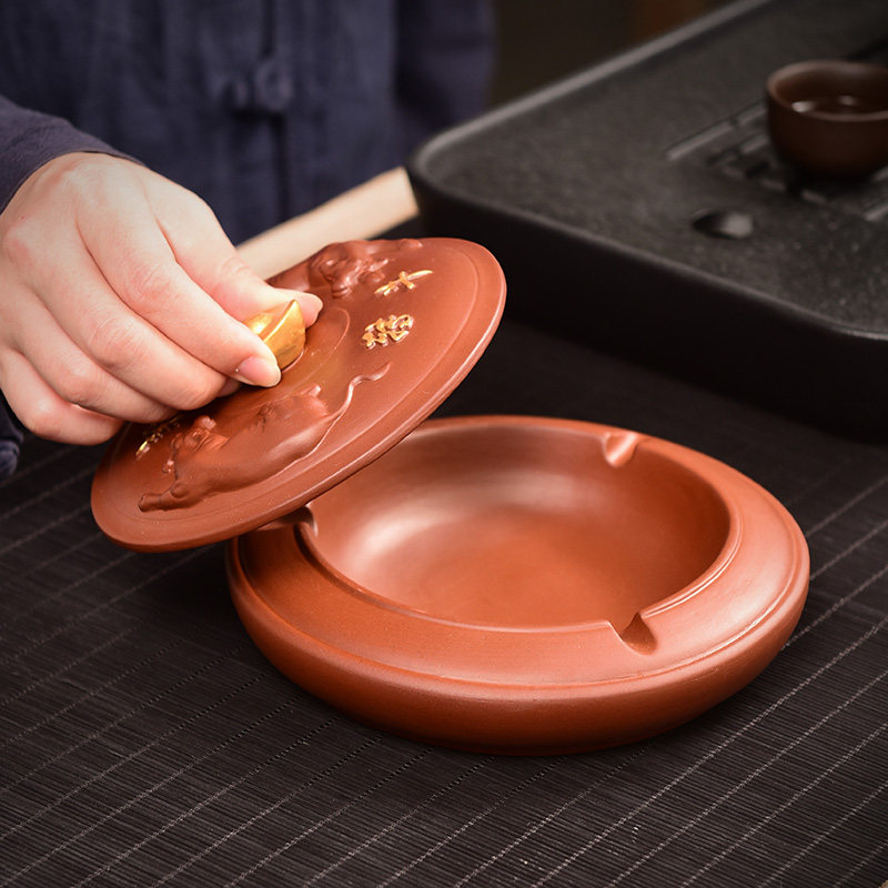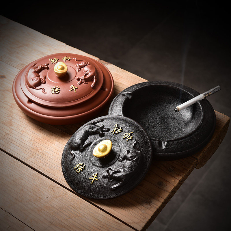 📚 茶宠摆件大号烟灰缸牛转乾坤紫砂精品创意·茶玩茶台茶道装饰配件