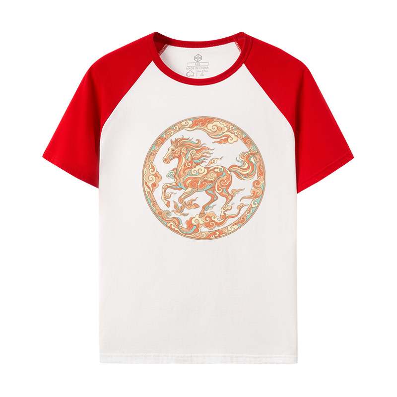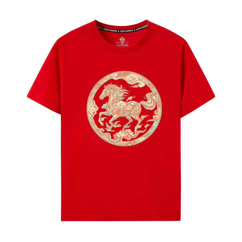 📚 2026年马年新年本命年短袖T恤酒红色衣服敦煌中国风国潮大码horse