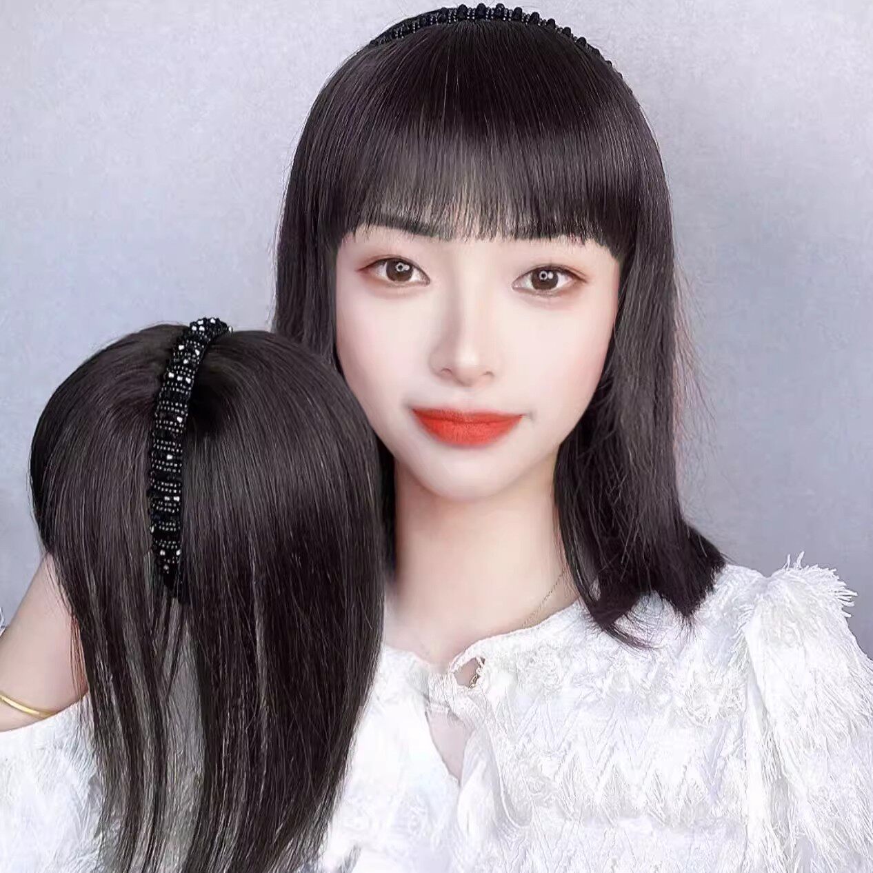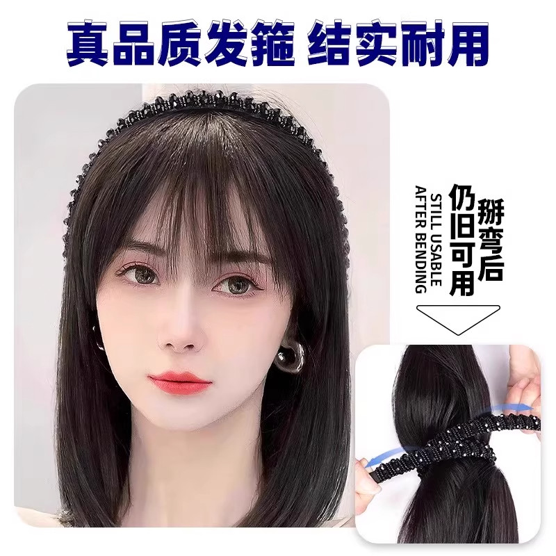 📚 发箍刘海头顶补发片假发女一体式遮白增量洋气水钻发箍直发假发片
