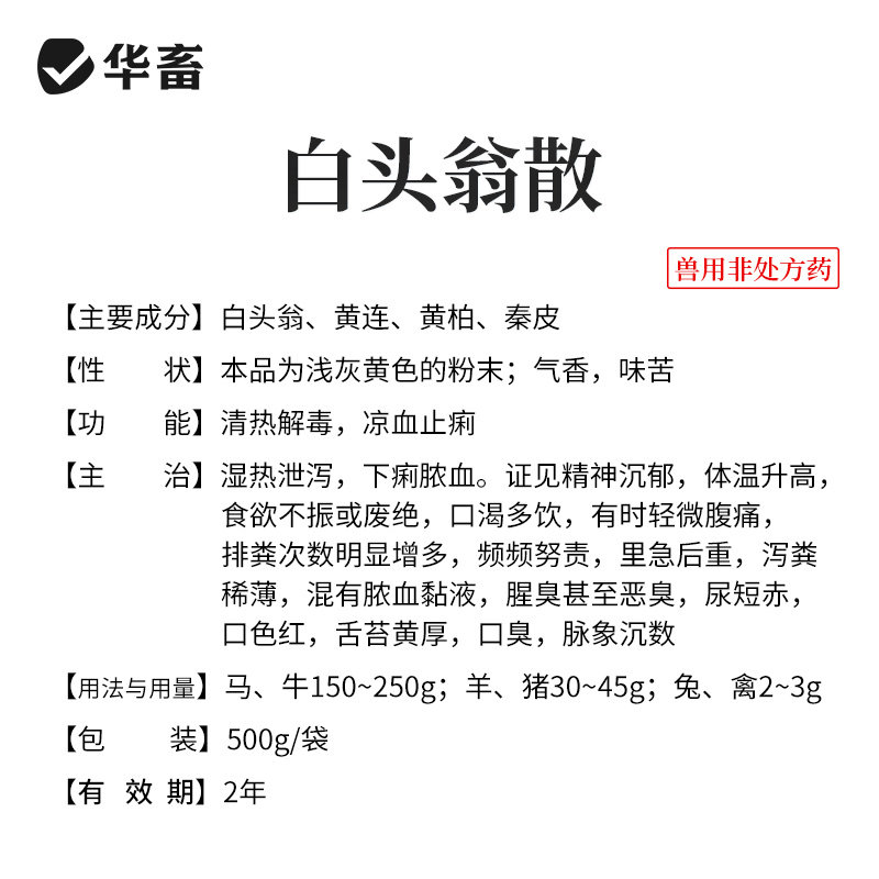 📚 华畜白头翁散兽用兽药猪牛羊鸭子仔猪拉稀鸡拉稀拉白便专用药肠炎