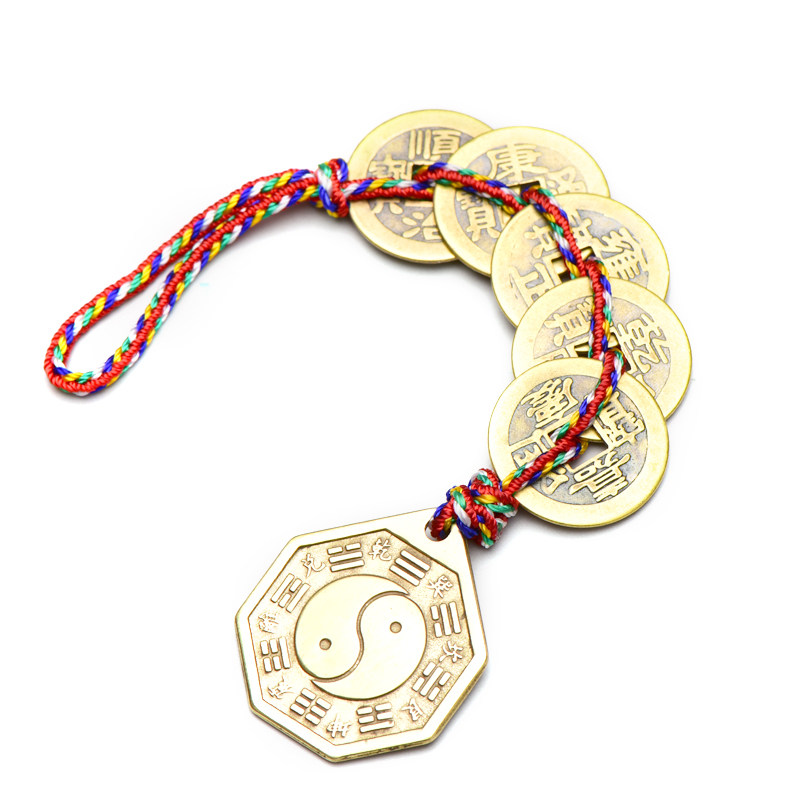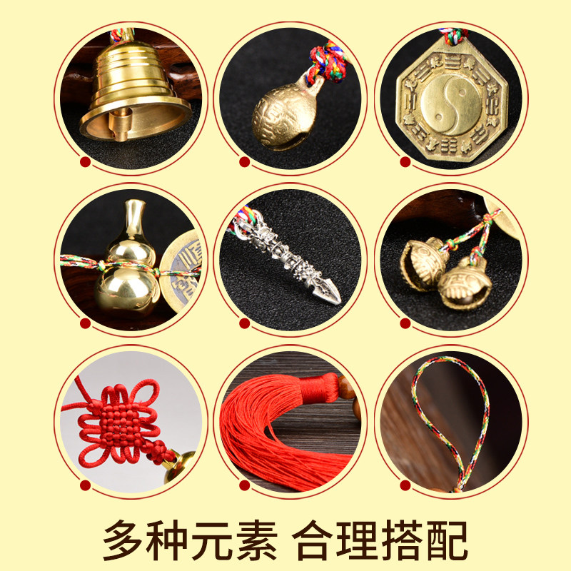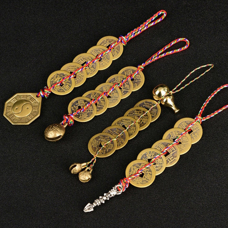 📚 聚贤阁黄铜五帝钱吉祥结挂件门对门清代古币铜钱铜铃铛摆件