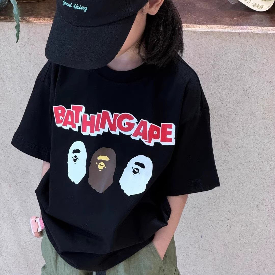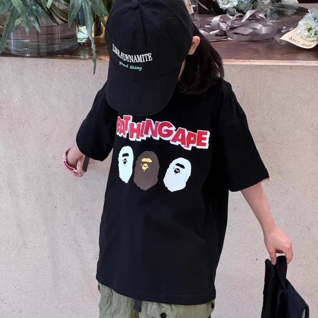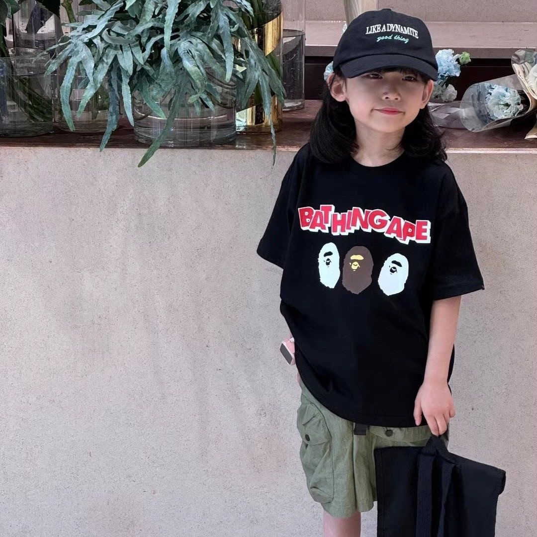 📚 男女童日系潮牌短袖T恤夏季新款中小童洋气猿猴字母卡通百搭上衣