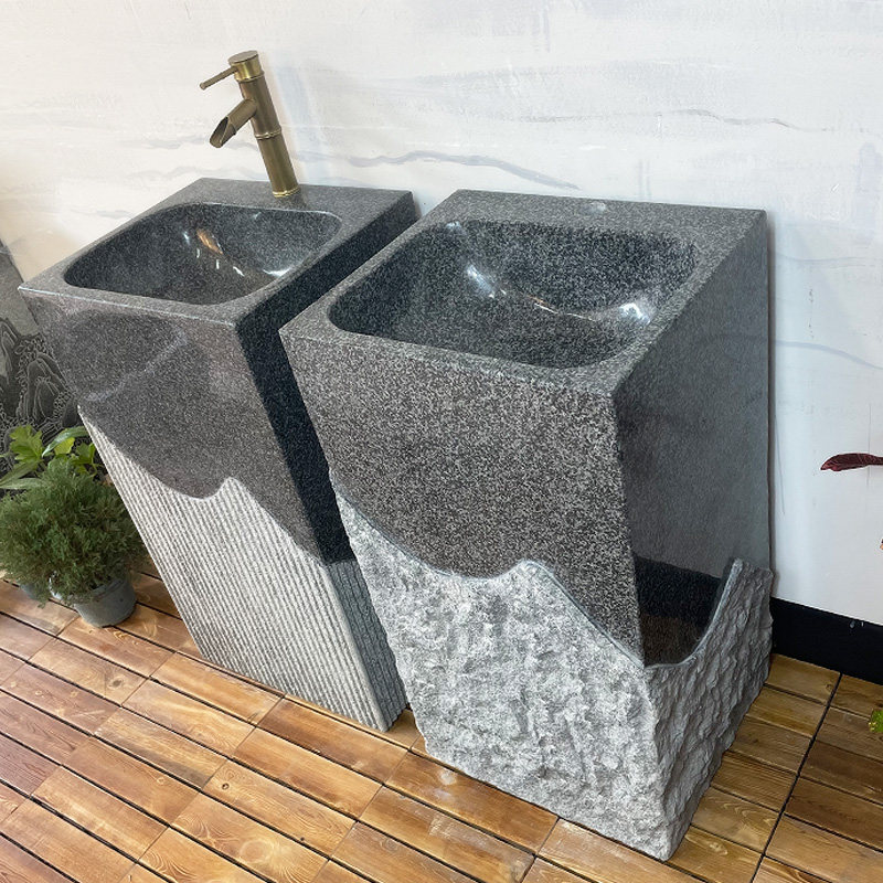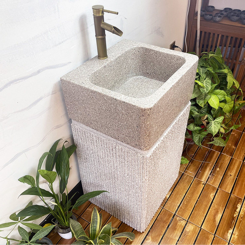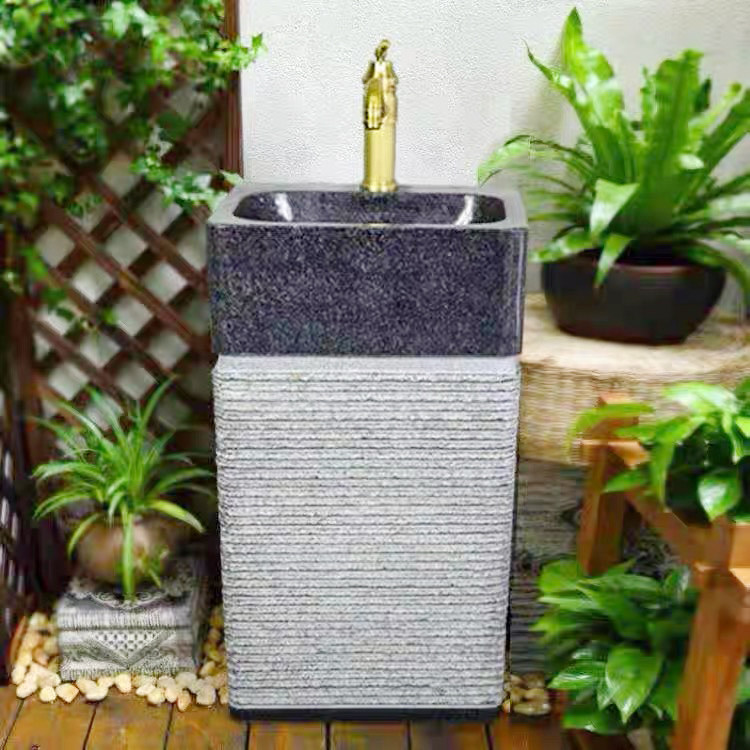 📚 石头洗手盆户外原石台盆别墅庭院子花园立柱式洗手池室外一体水槽