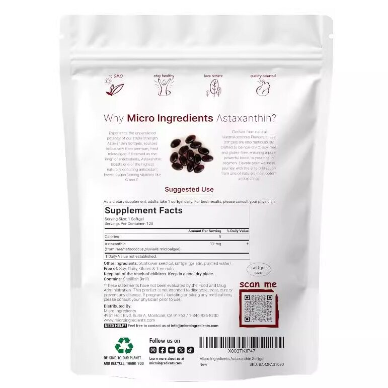 📚 美国虾青素12毫克120粒Natural Astaxanthin成人关节眼睛内循环正