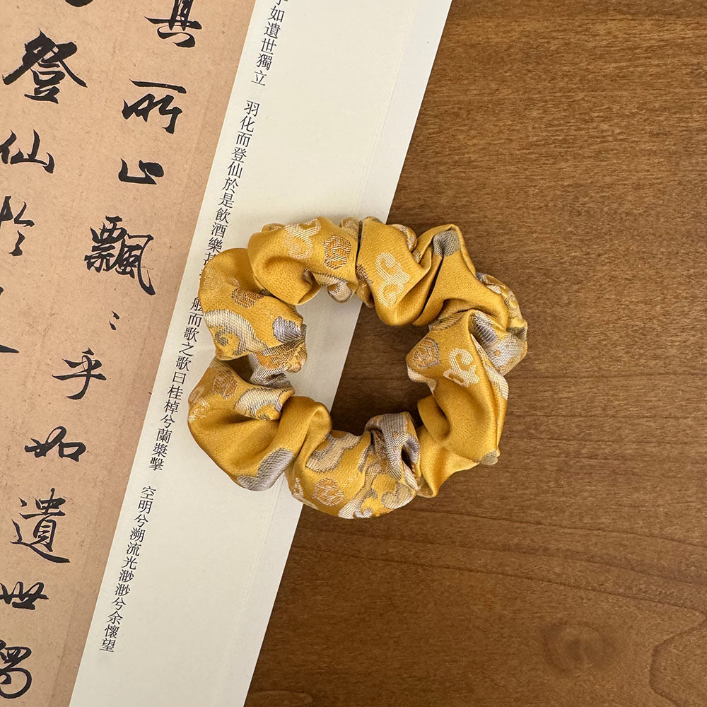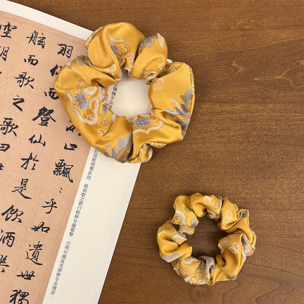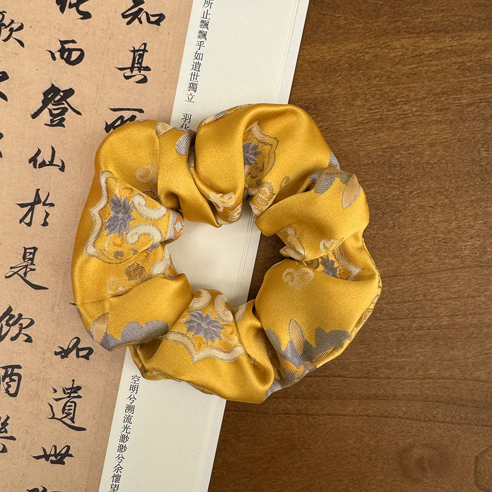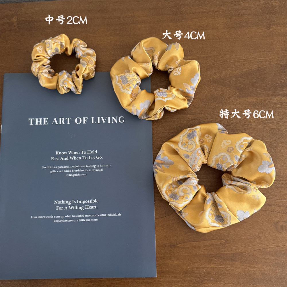 📚 人丝织锦缎金黄宝相花大肠发圈古风旗袍配饰头绳皮筋盘发中国风式