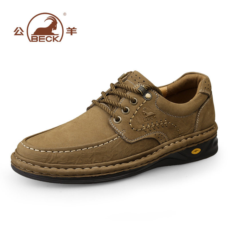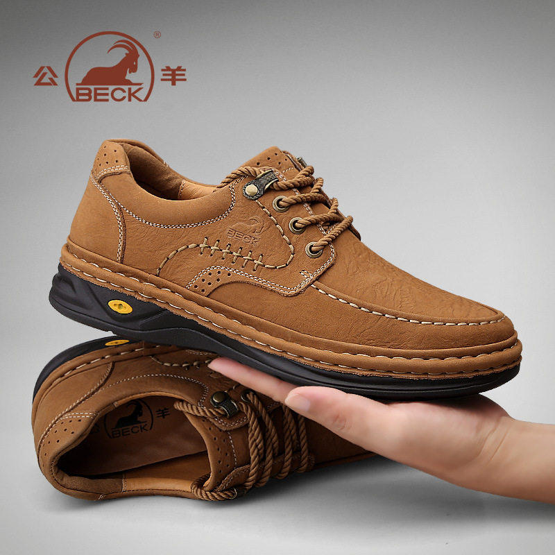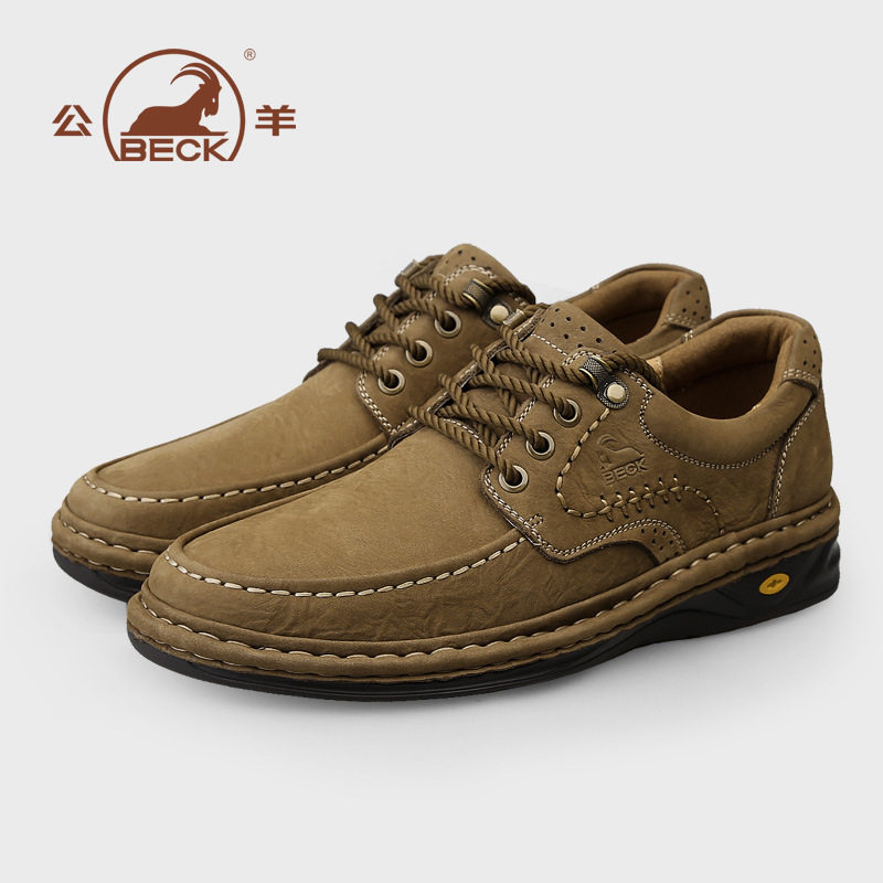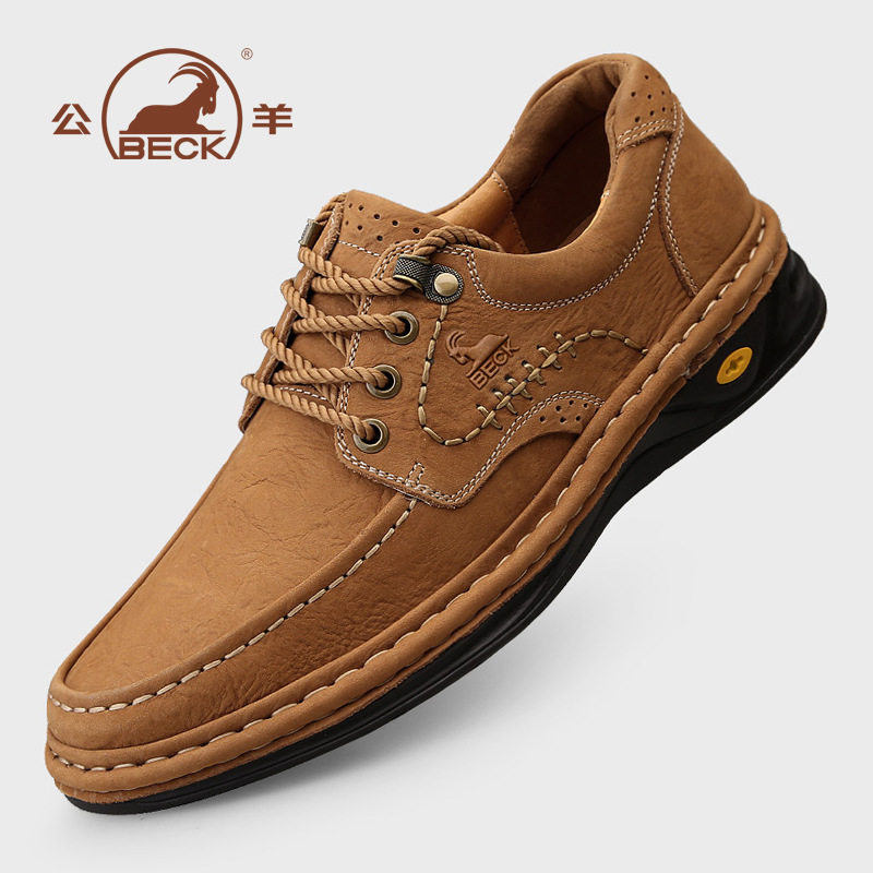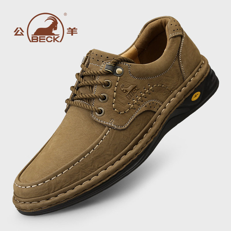 📚 公羊卡其色真皮男鞋2026春季新款牛皮系带厚底鞋男士手工休闲皮鞋