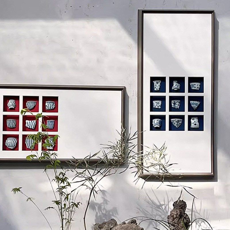📚 小众艺术挂画新款餐厅高级感w餐桌青花瓷片手工装饰画中式风格茶