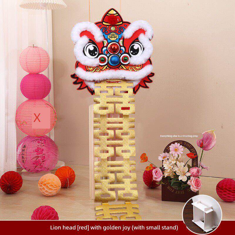 📚 结婚装饰醒狮婚房布置狮子头摆件男女方婚礼新房客厅晨袍拍照道具