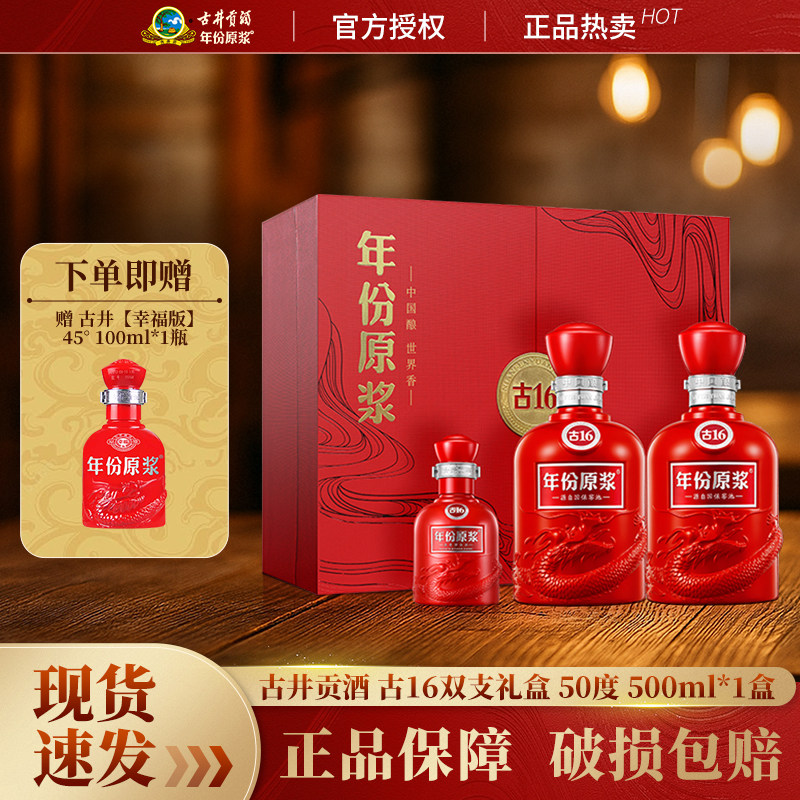 📚 古井贡酒年份原浆古16礼盒50度500mL*2瓶高度白酒节日送礼宴席用