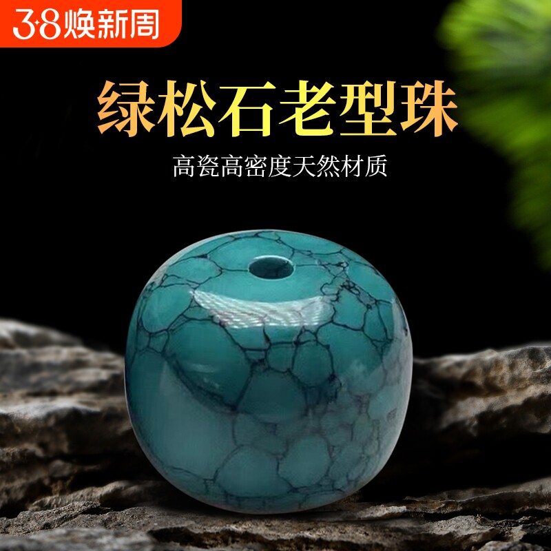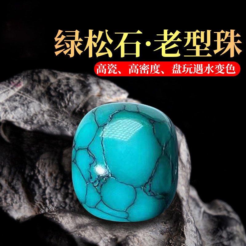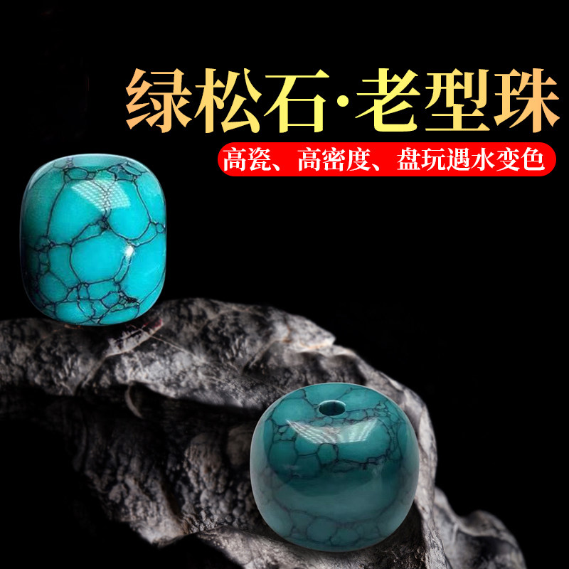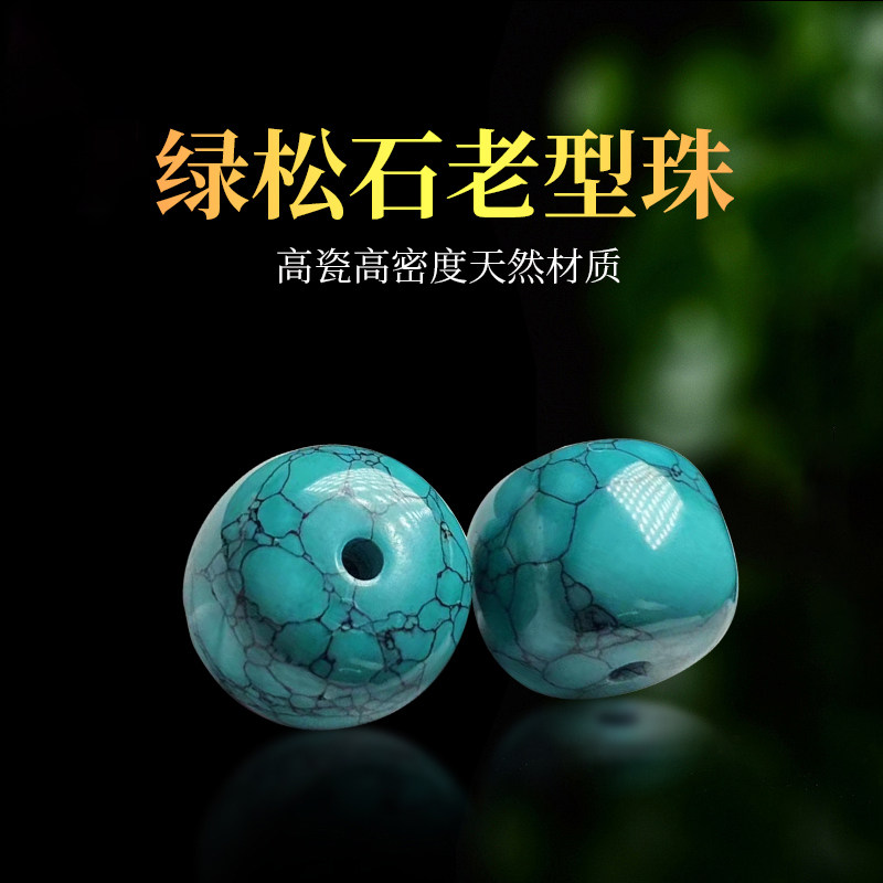 📚 原矿绿松石水草纹桶珠老型珠散珠单珠文玩diy手串配饰配珠子高瓷