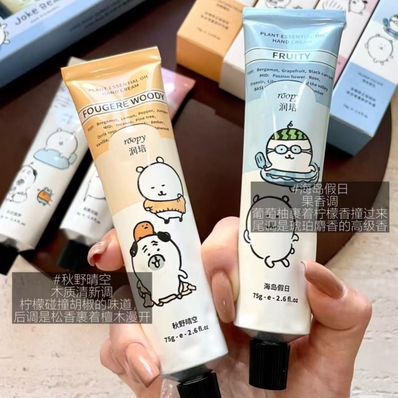 🍁换季之际,手部肌肤变得干燥不堪,每次洗手、做家务都仿佛在挑战皮肤的“耐力”。😫但今天我要给大家分享一款超级好用的护手霜——ROOPY润培自嘲联名护手霜!