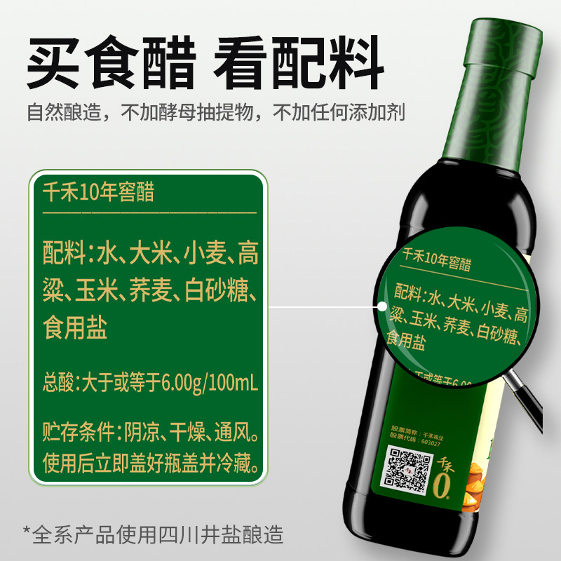 📚 千禾380天零添加特级生抽酱油+10年醋500ml+6年料酒500m高配组