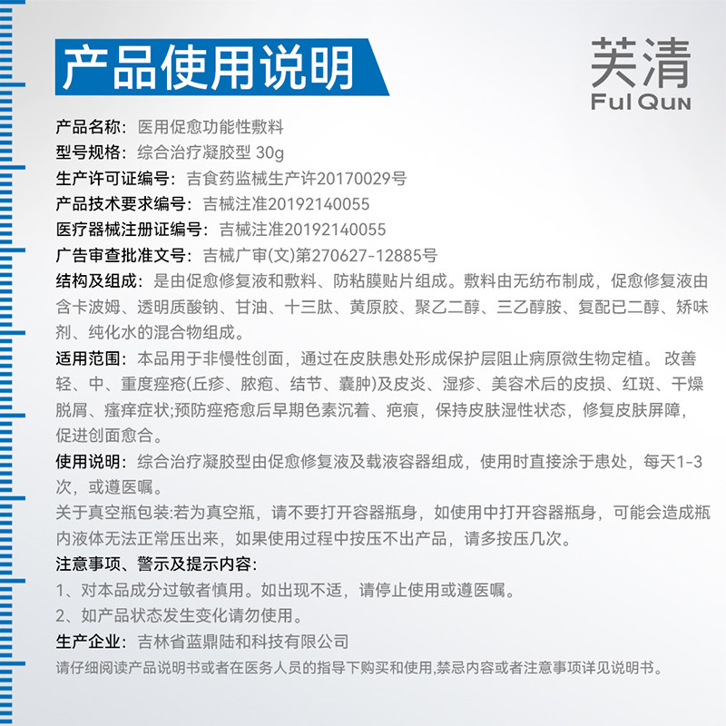 📚 芙清医用凝胶面部修复痤疮痘痘膏皮炎湿疹消红肿女术后修复屏障