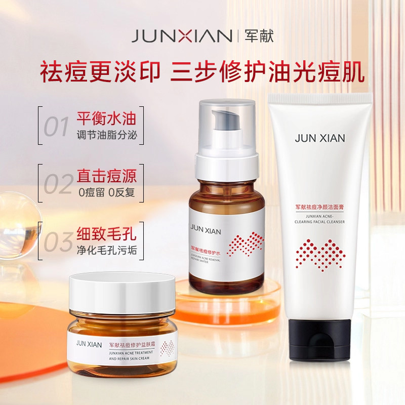 📚 军献祛痘精华套盒补水保湿温和祛痘去红肿痘痘提亮肤色祛痘套装