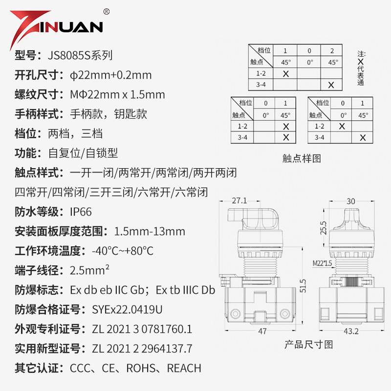 📚 JS8085S防爆防尘防腐万能转换开关二档三档银点开闭两开孔22mm