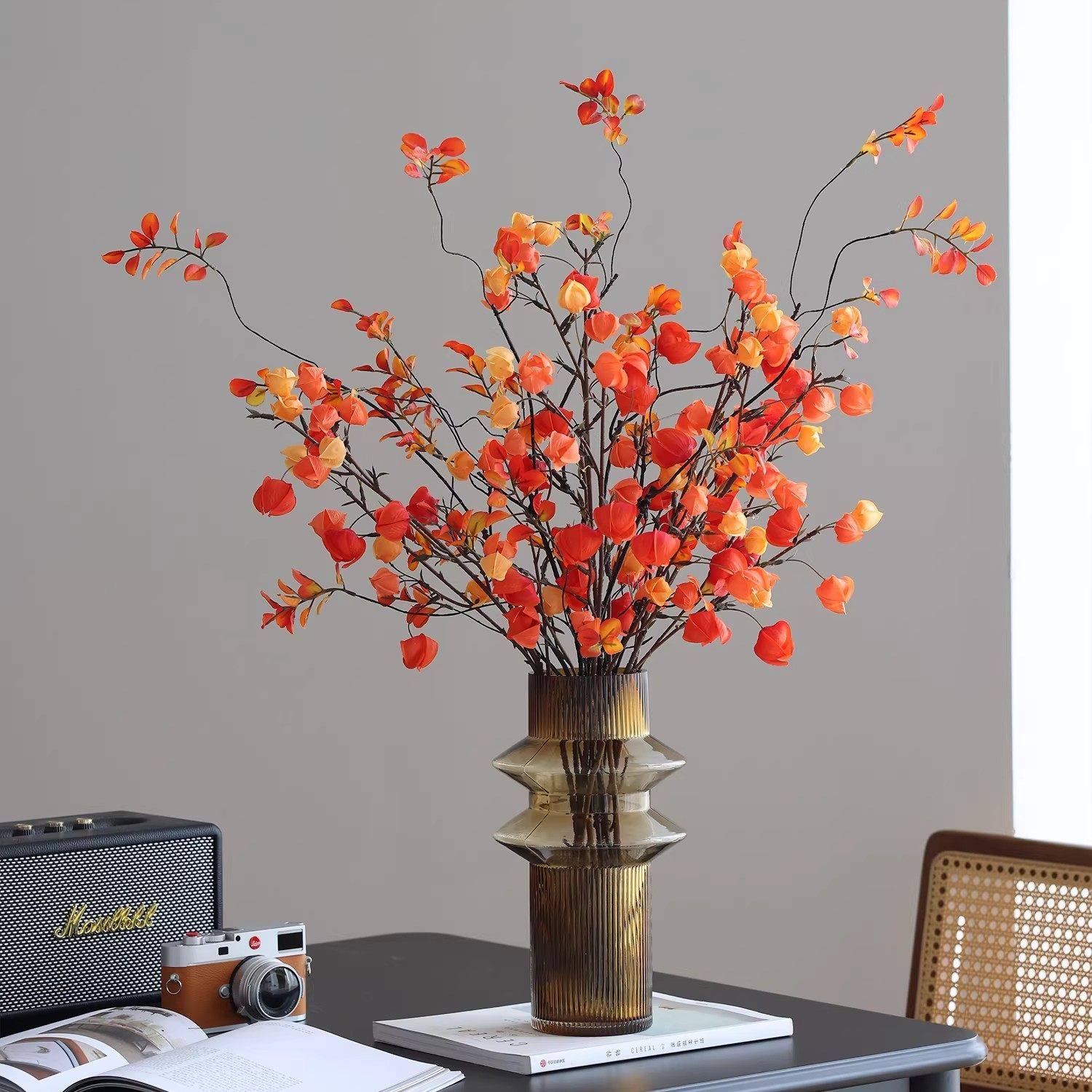 📚 灯笼果仿真花高级感逼真假花摆设轻奢高端客厅高级仿生花束摆件