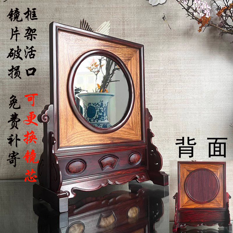 📚 东瓶西镜 红木雕花插屏镜实木屏风镜红酸枝中堂镜子条案装饰摆件