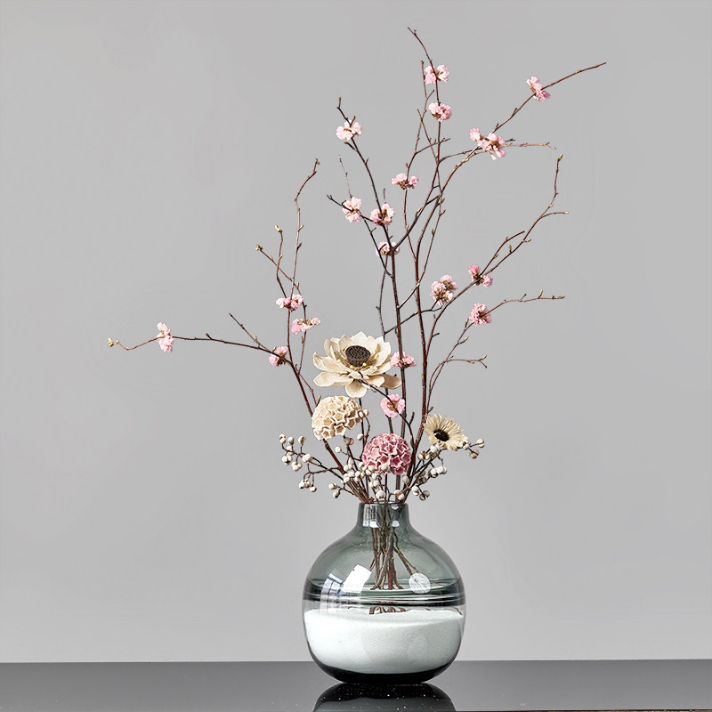 📚 樱花永生花绣球干花花束家居摆设真花长枝客厅落地带花瓶北欧套装