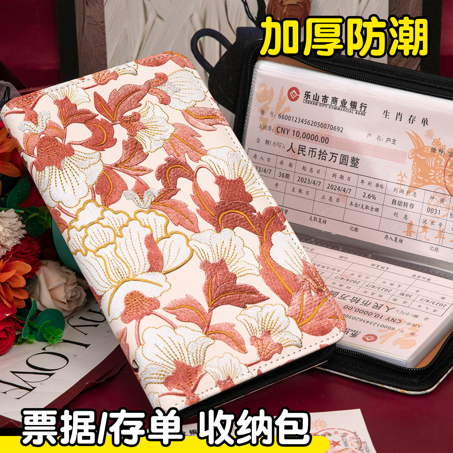 18¥ MF278 iS46UnfDFGK¥ https://m.tb.cn/h.7xLkvH1 2026年新款拉链刺绣牡丹花纹定期存单专用夹收纳本银行纸质一体包大容量防水存折支票多功能票据存折收纳册 --------------------- 【原售价】32.8元 【现售价】32.8元。