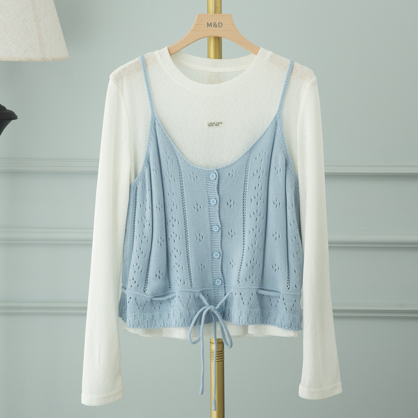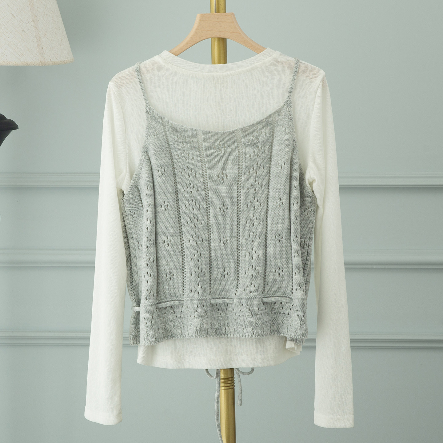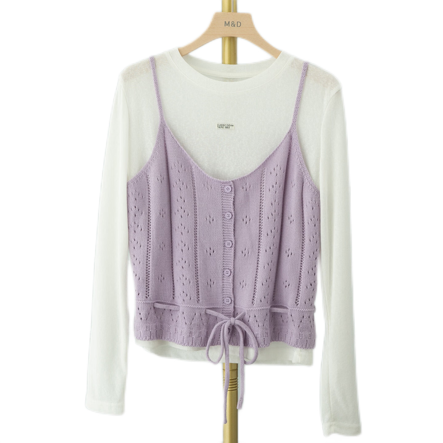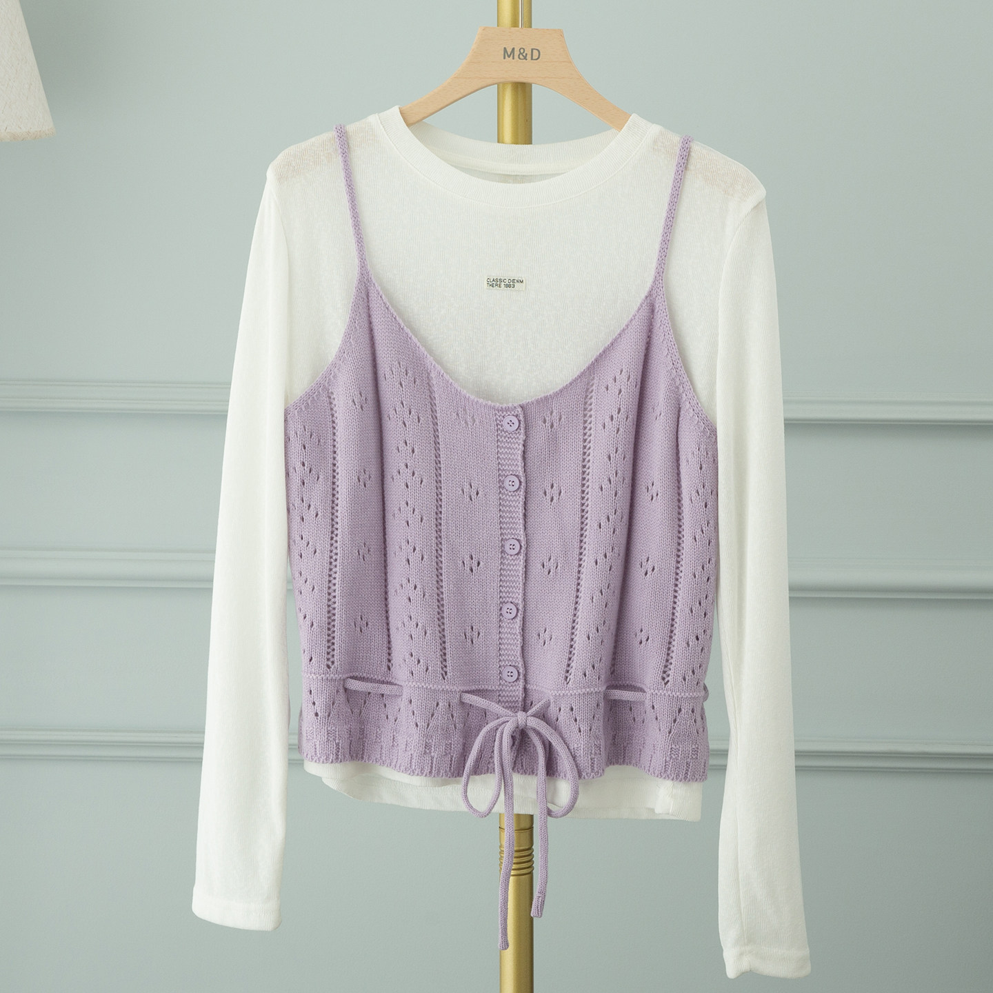📚 紫色针织吊带马甲叠穿白色长袖女2026春季新款韩式绝美漂亮小套装