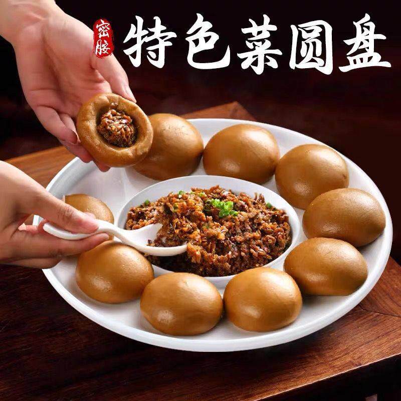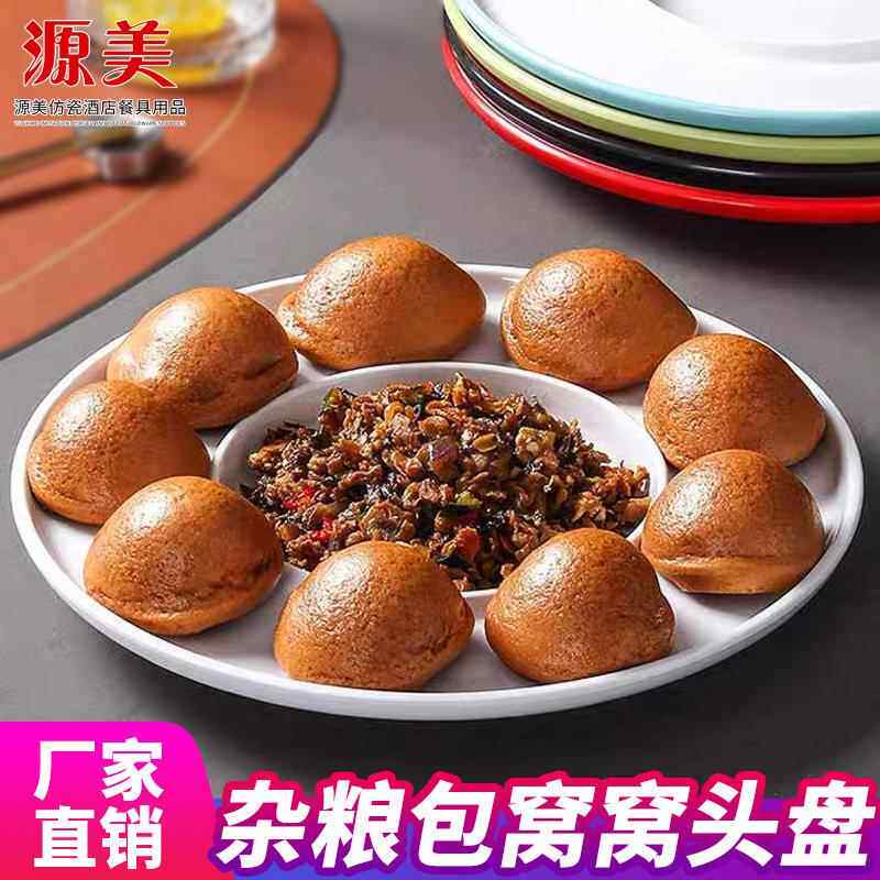 📚 特色菜盘密胺梅菜扣肉专用盘酒席中餐双格盘窝窝头杂粮包夹饼盘子