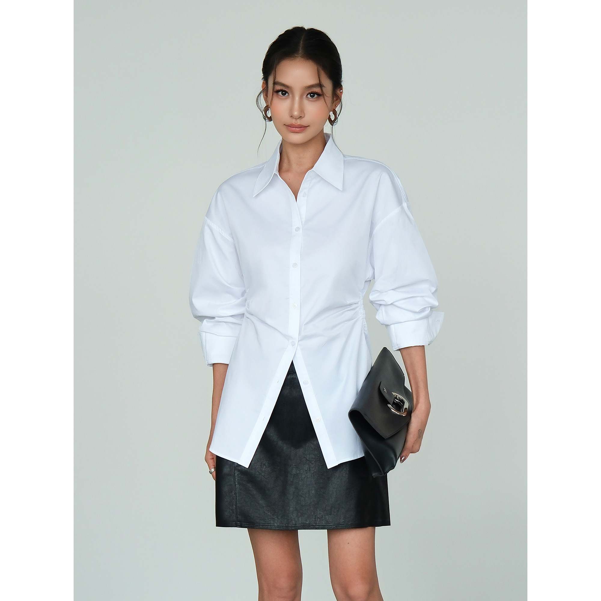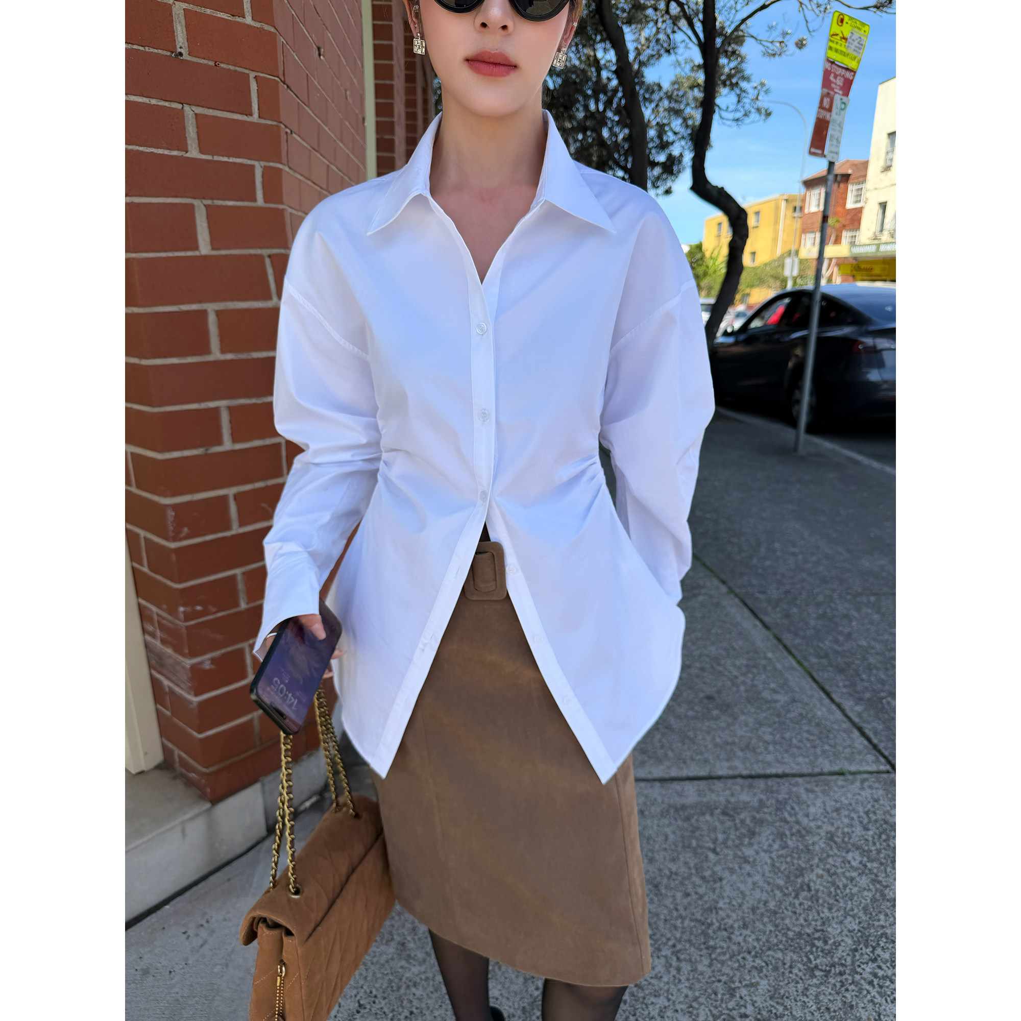 📚 NEVA HU 时尚基石 设计感翻领长袖衬衫女高级气质显瘦收腰衬衣