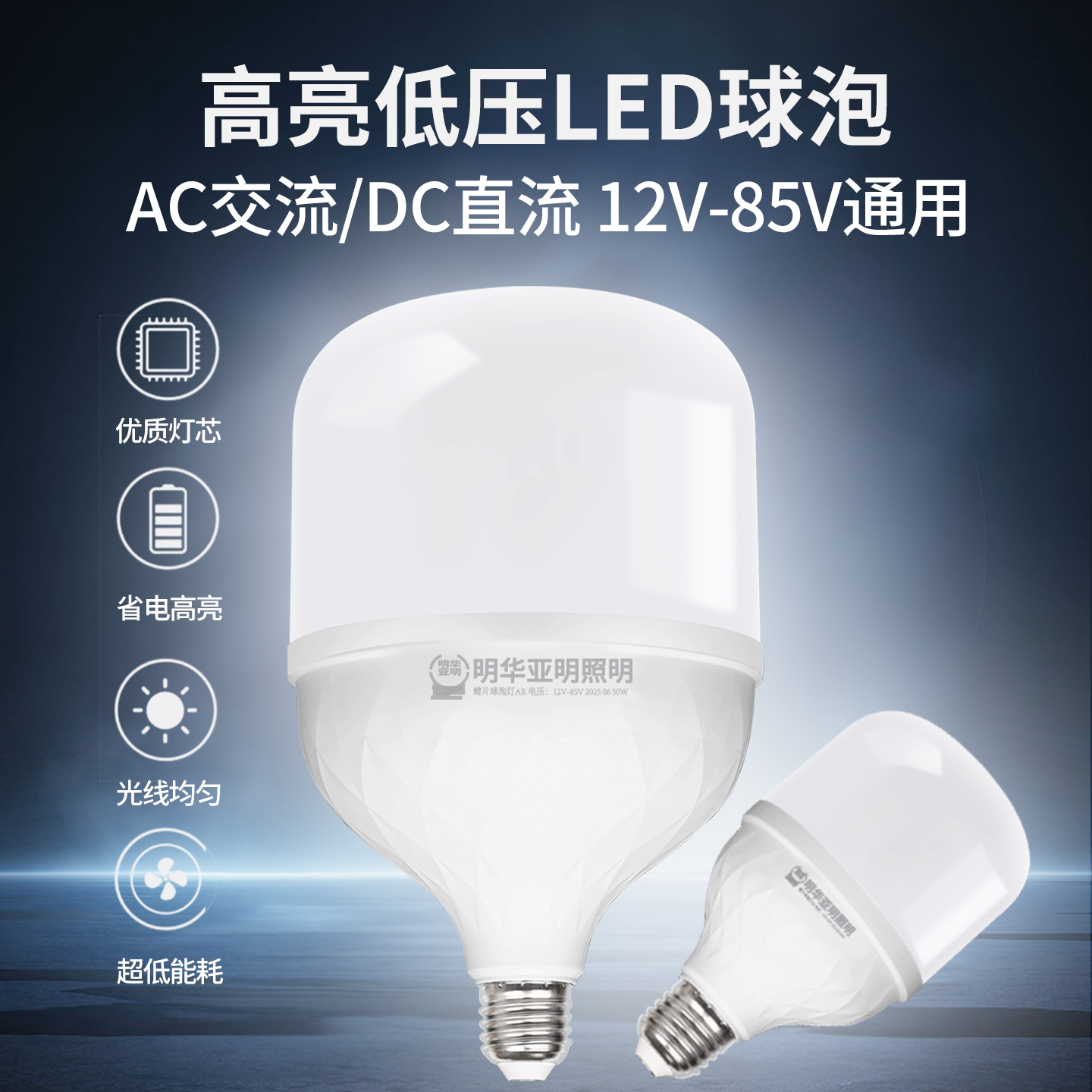 📚 亚明低压LED灯泡12v24v36v48v85v交直流e27螺口e40球泡电瓶节能灯