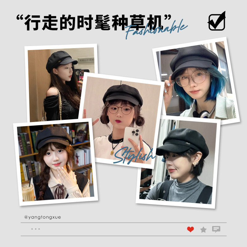 📚 八角帽女夏季薄款显脸小贝雷帽韩版冬天ins网红春秋女士鸭舌帽子
