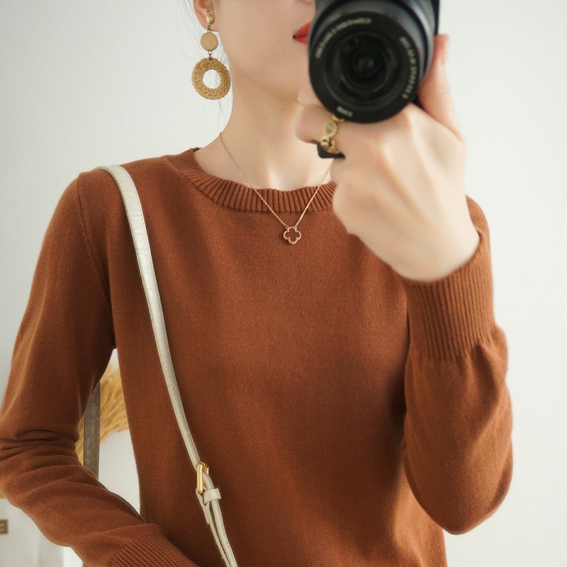 📚 100%纯棉针织衫毛衣百搭薄款宽松春夏新款圆领打底长袖套头上衣女