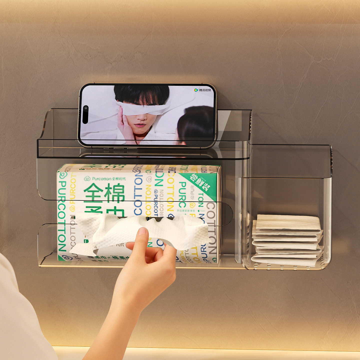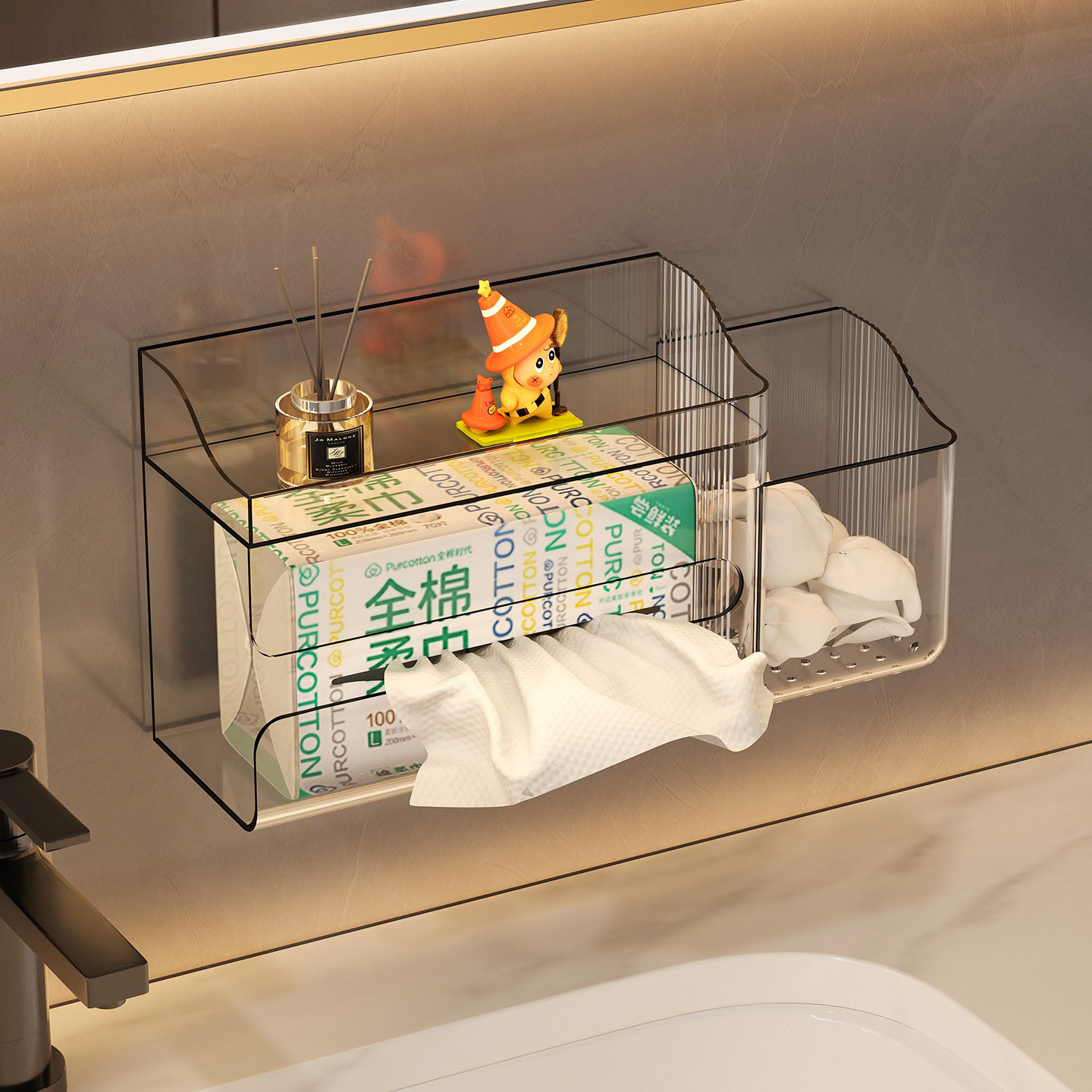 📚 洗脸巾收纳盒壁挂式二次利用废弃擦脸巾棉柔巾纸巾盒卫生间置物架