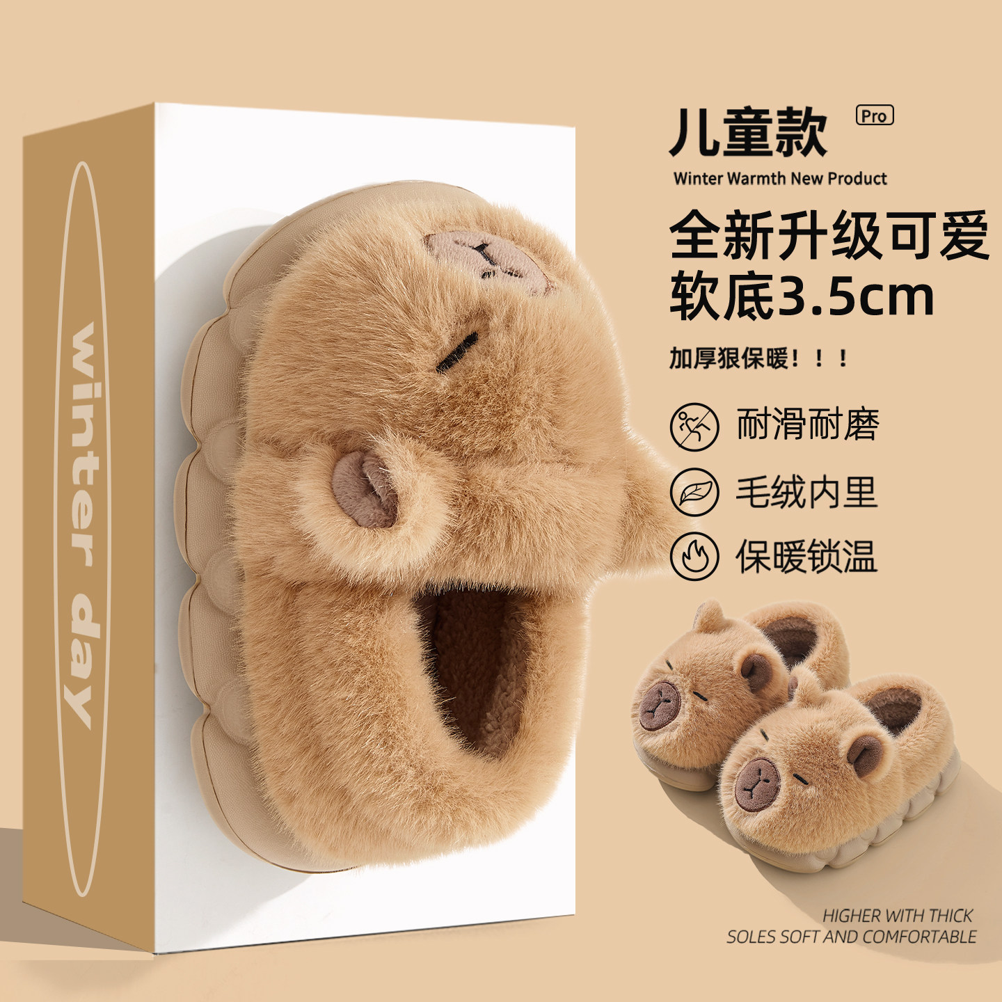 #卡皮巴拉儿童棉拖鞋 #冬季保暖 #室内家居 #防滑毛绒 #冬日新宠
