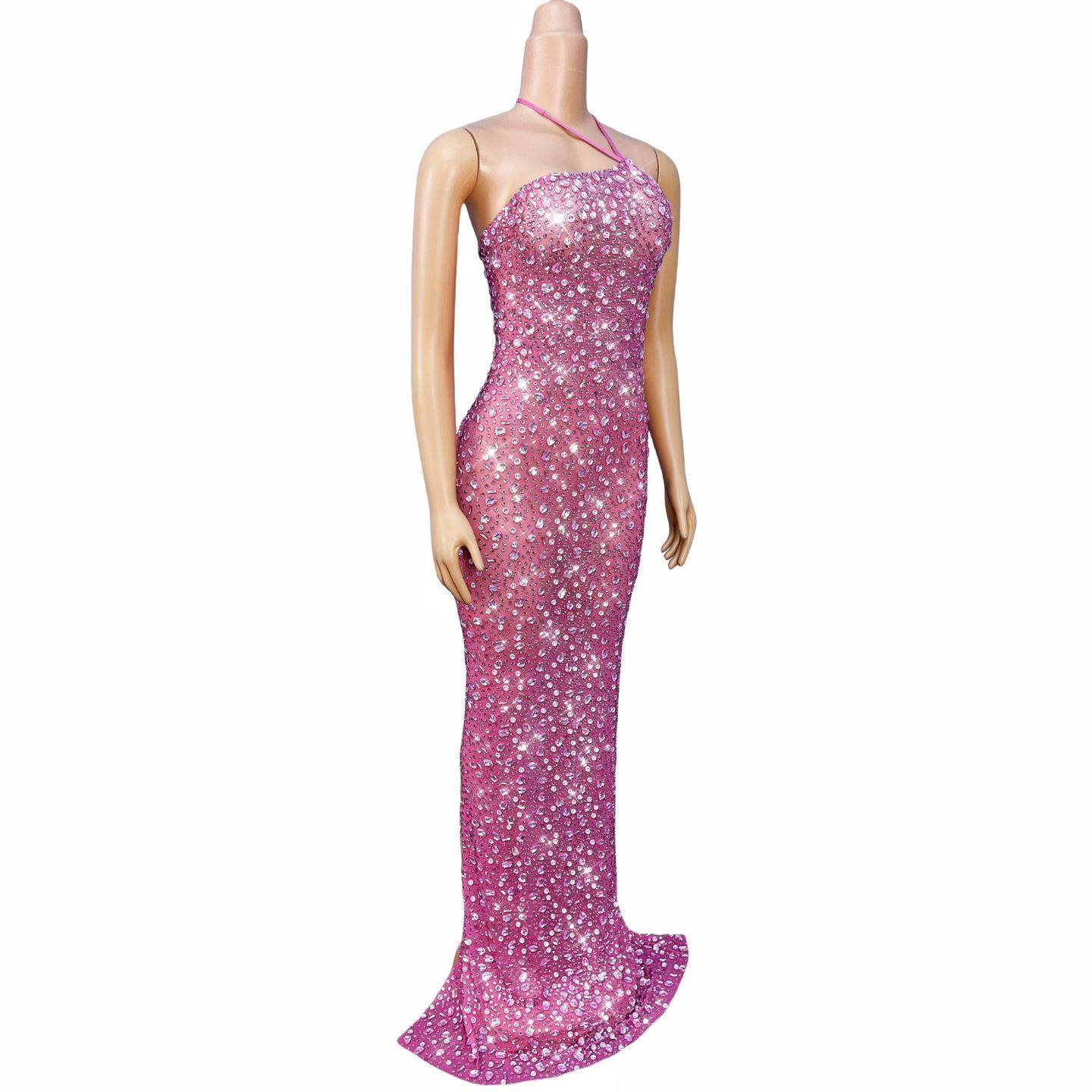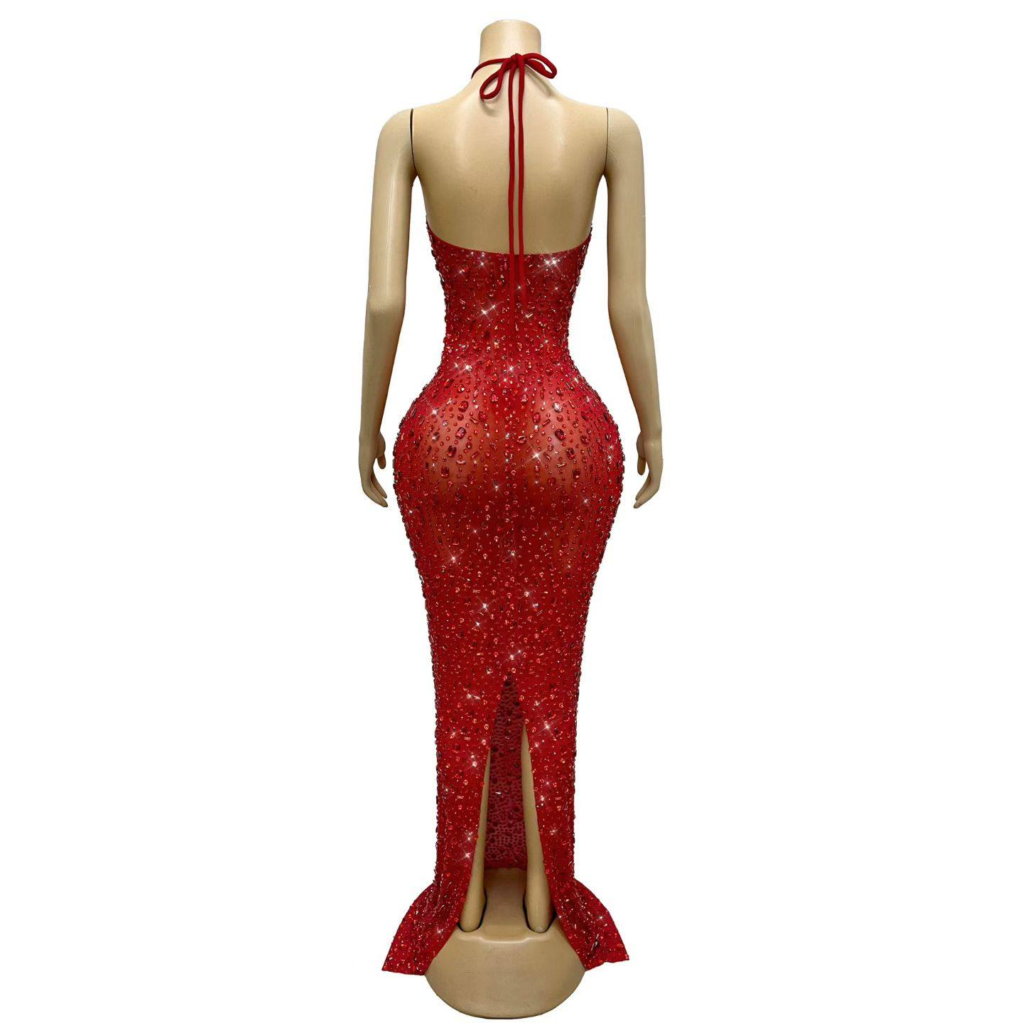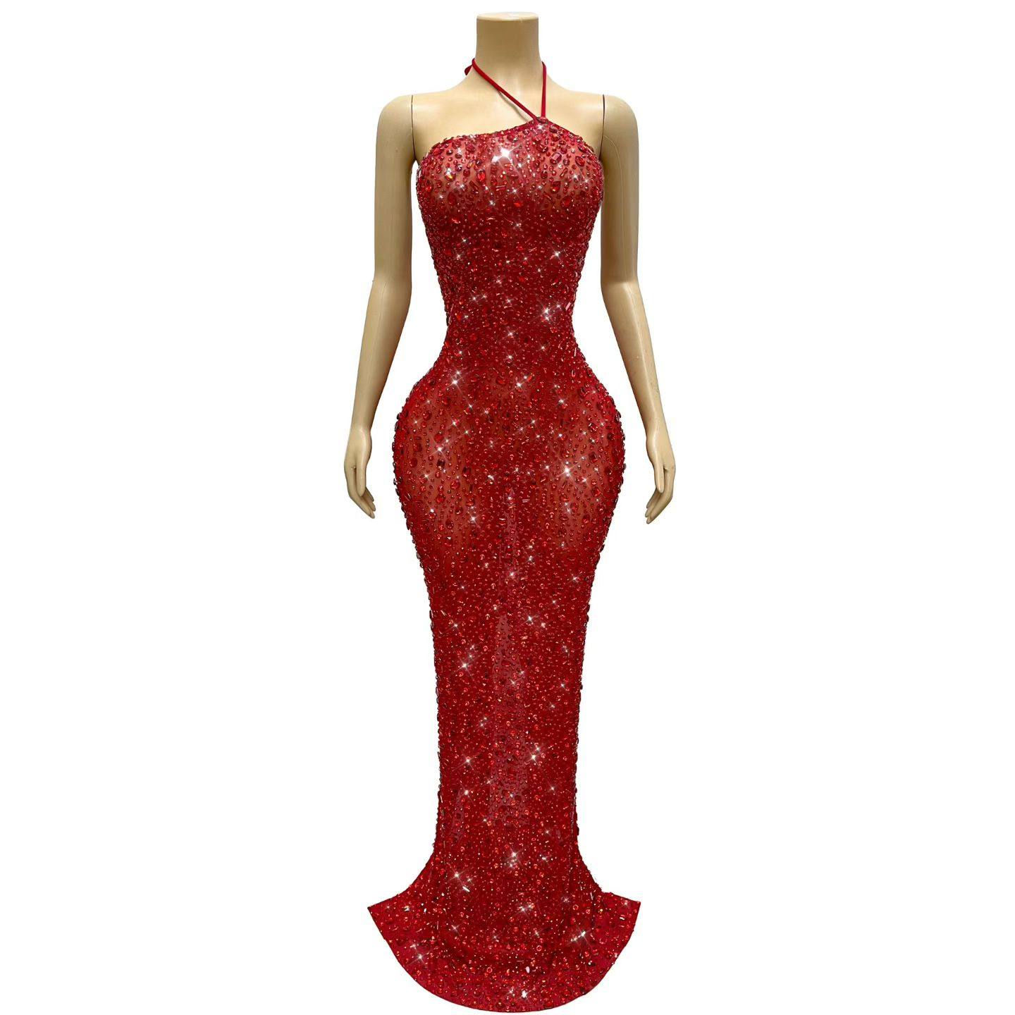 📚 钻石礼服性感挂脖长裙生日party晚礼服年会女主持服装