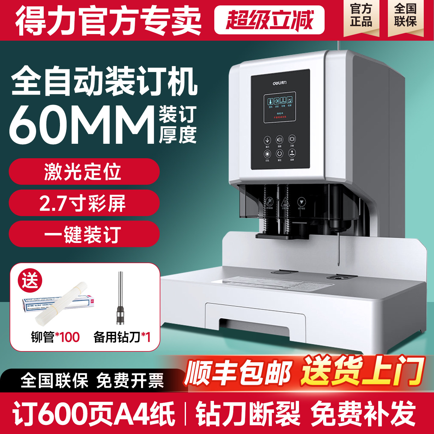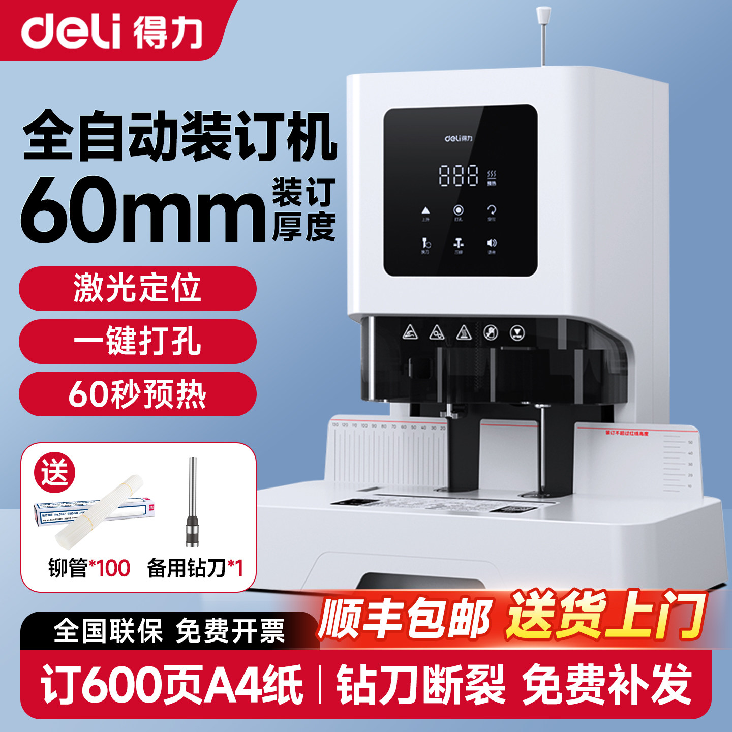 📚 得力14601凭证装订机全自动gb710财务会计记账电动打孔器gb700热熔装订档案制订机14602/14667官方旗舰店正品