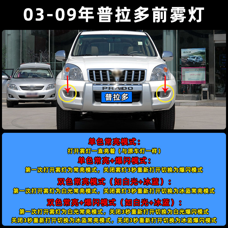 📚 适用03-09款丰田霸道普拉多超亮LED雾灯黄金光前雾灯灯泡改装配件
